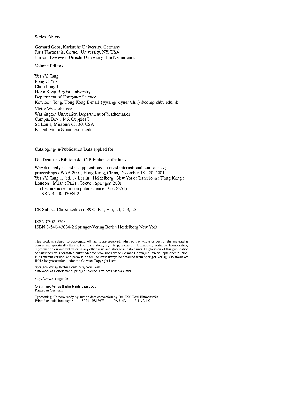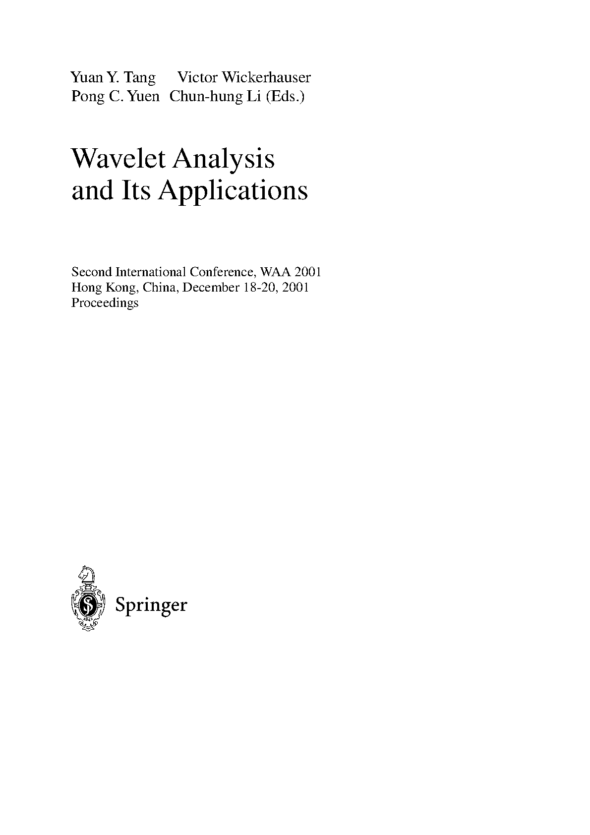 Wavelet Analysis and Its Applications: Proceedings of the Second International Conference, WAA 2001 by Yuan Y. Tang, Victor Wickerhauser, Pong C. Yuen, and Chun-hung Li