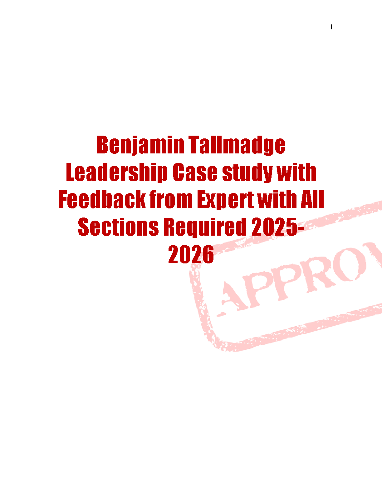Ace your leadership exams with this comprehensive case study by Benjamin Tallmadge. This updated 2024-2025 edition includes expert feedback and all required sections, designed to help students pass their exams on the first attempt.