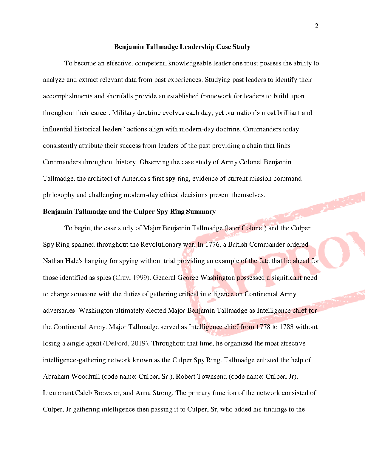 Benjamin Tallmadge Leadership Case Study with Expert Feedback: 2024-2025 Edition