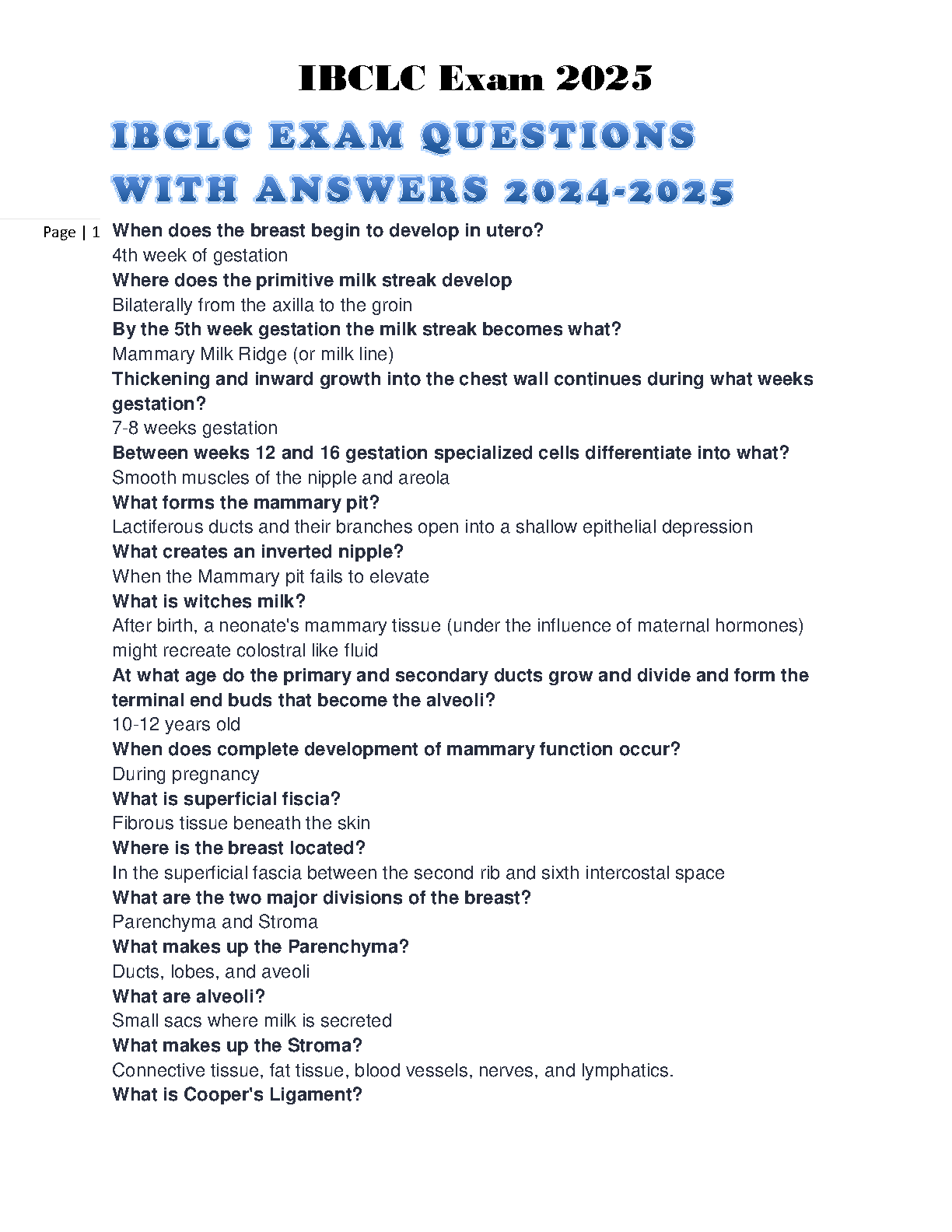 IBCLC Exam Questions and Answers 2024-2025 Edition by Unknown Author