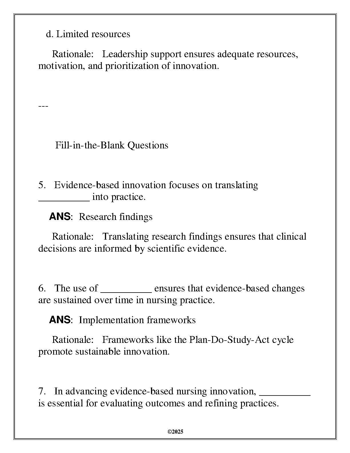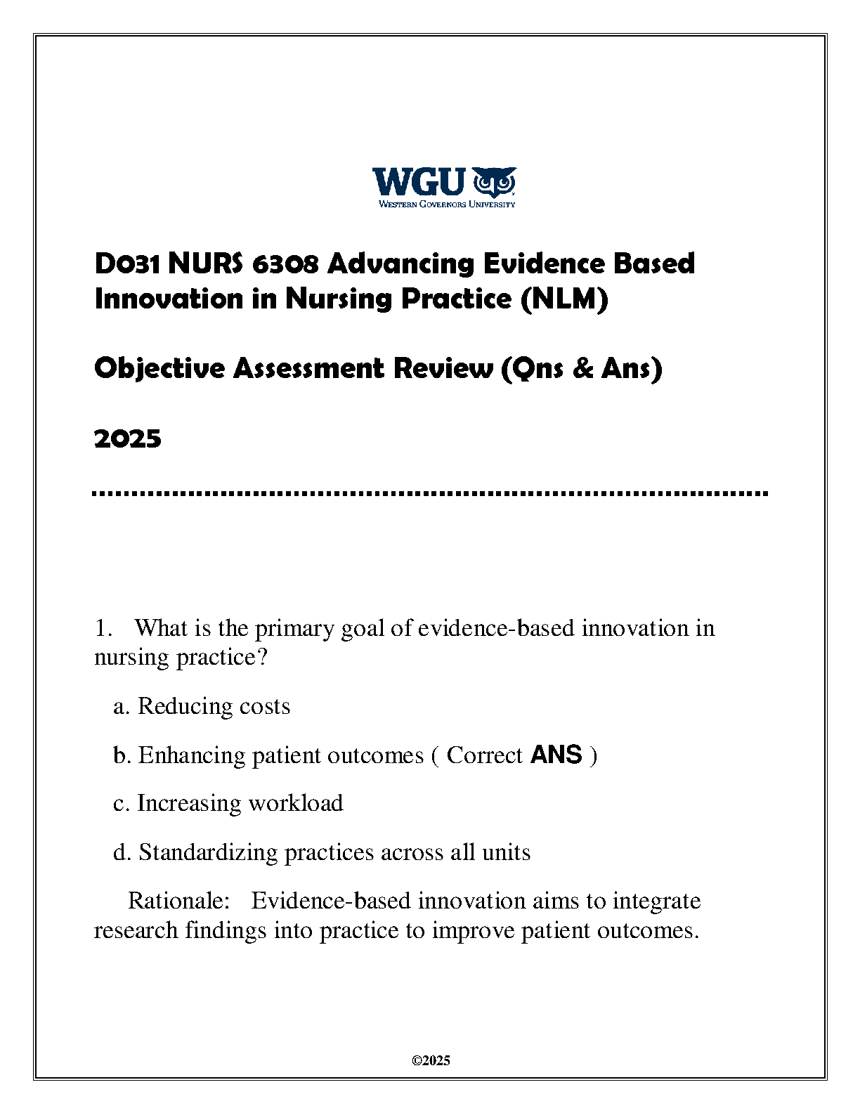 WGU NURS 6308 Advancing Evidence Based Innovation in Nursing Practice (NLM) 2025: Objective Assessment Review Questions and Answers