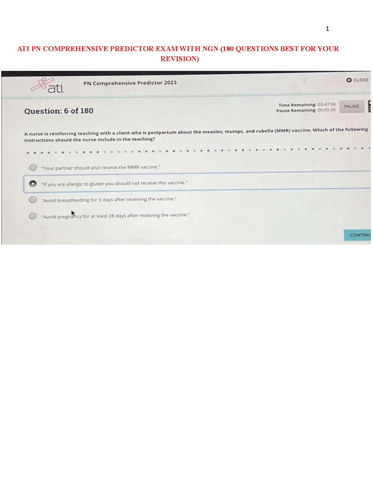 Ace your ATI PN Comprehensive Predictor exam on your first try with this 2023 edition. This resource includes 180 high-yield questions designed to help you master the material and avoid resits. Prepare effectively for the exam with this comprehensive guide.