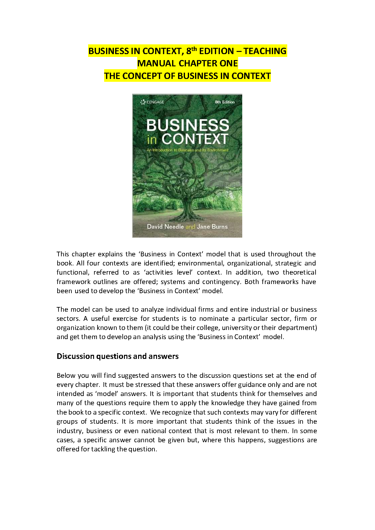 Business in Context, 8th Edition: Teaching Manual Chapter One by David Needle and Jane Burns