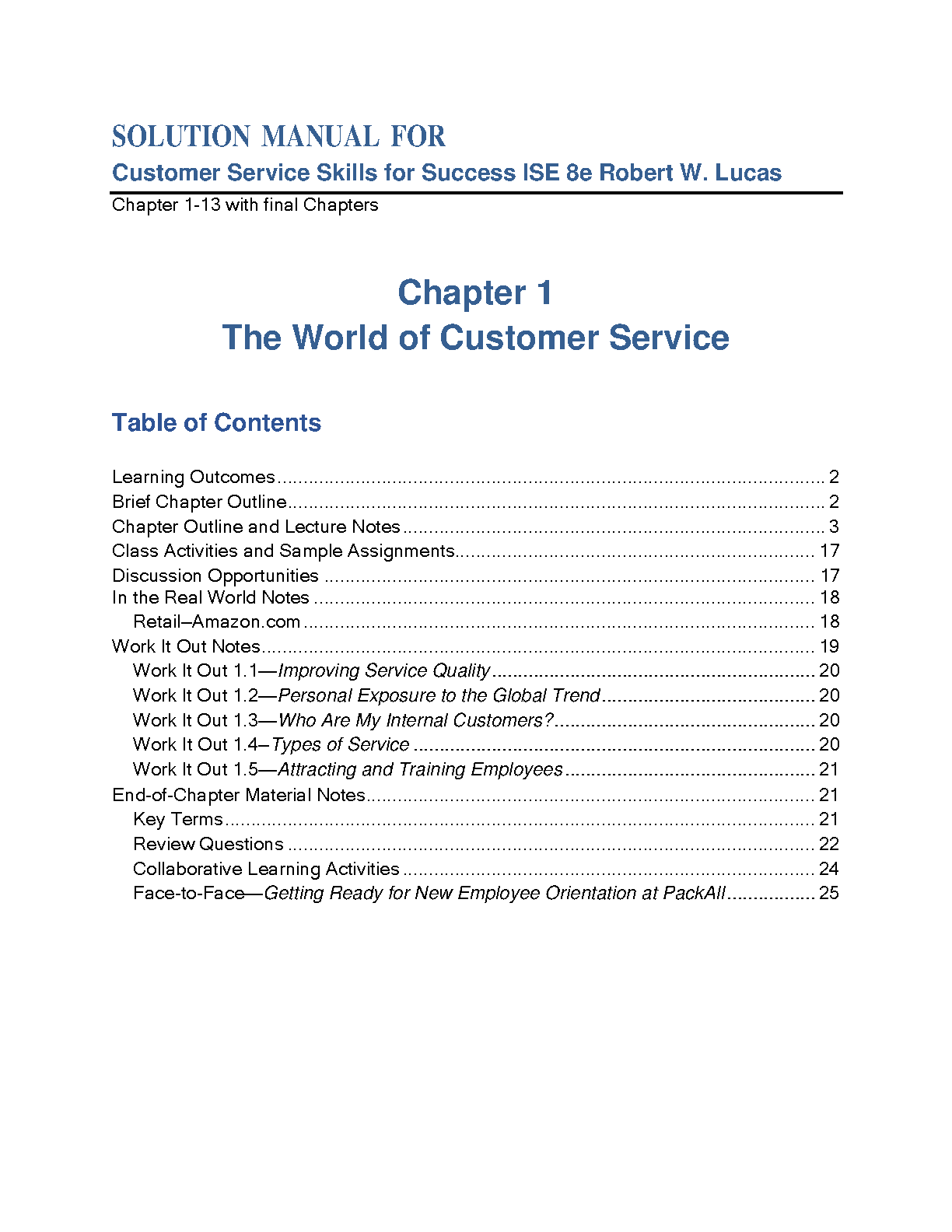 This solution manual provides comprehensive answers and explanations for the exercises and problems in Robert W. Lucas's Customer Service Skills for Success, 8th edition. It's designed to help students master the concepts and ace their exams on the first attempt.