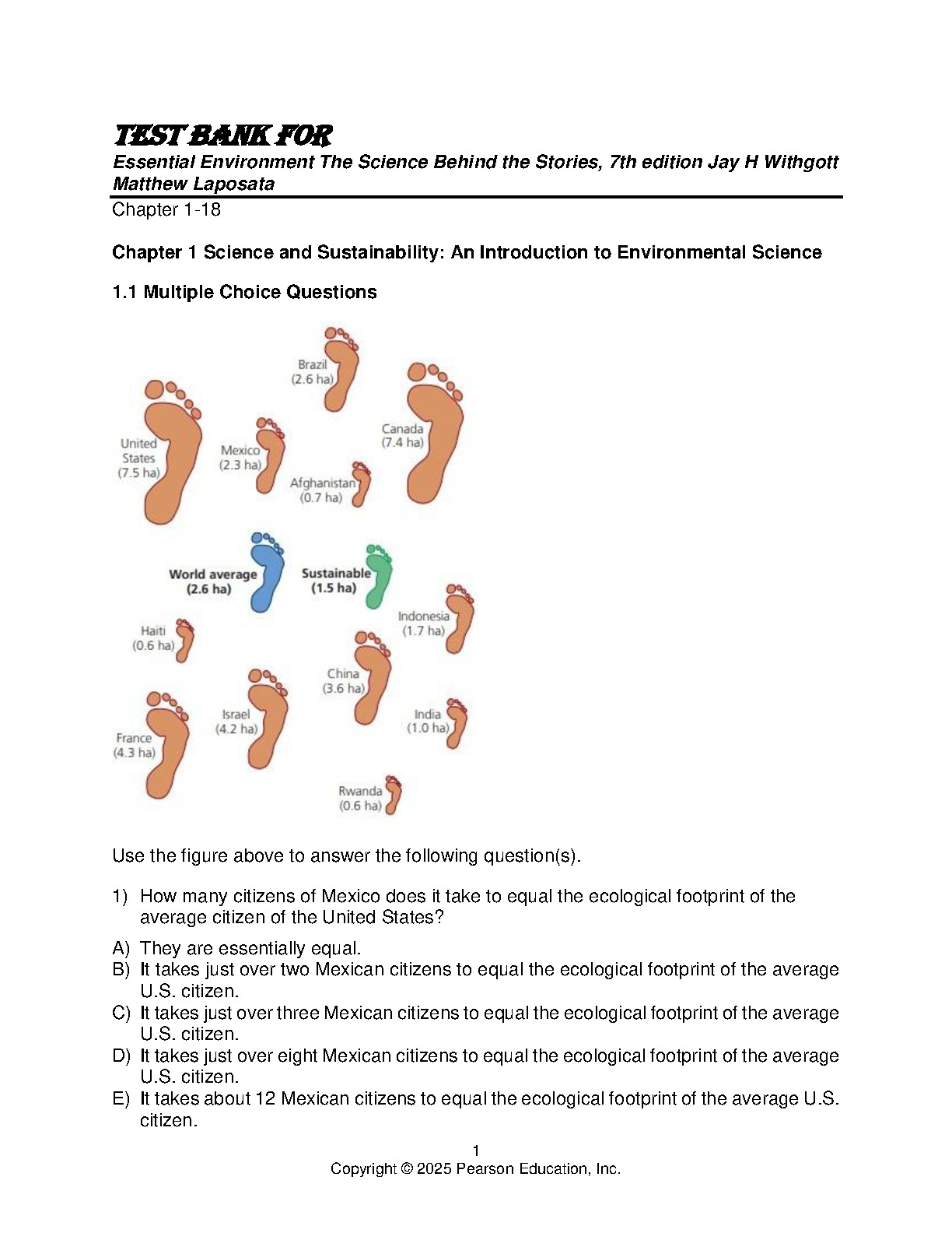 Essential Environment: The Science Behind the Stories, 7th Edition Test Bank by Jay H. Withgott and Matthew Laposata