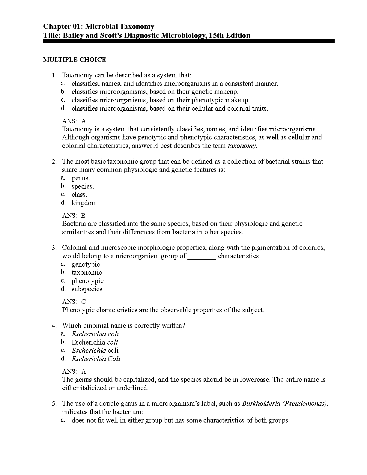 Bailey and Scott's Diagnostic Microbiology, 15th Edition: Multiple Choice Questions and Answers