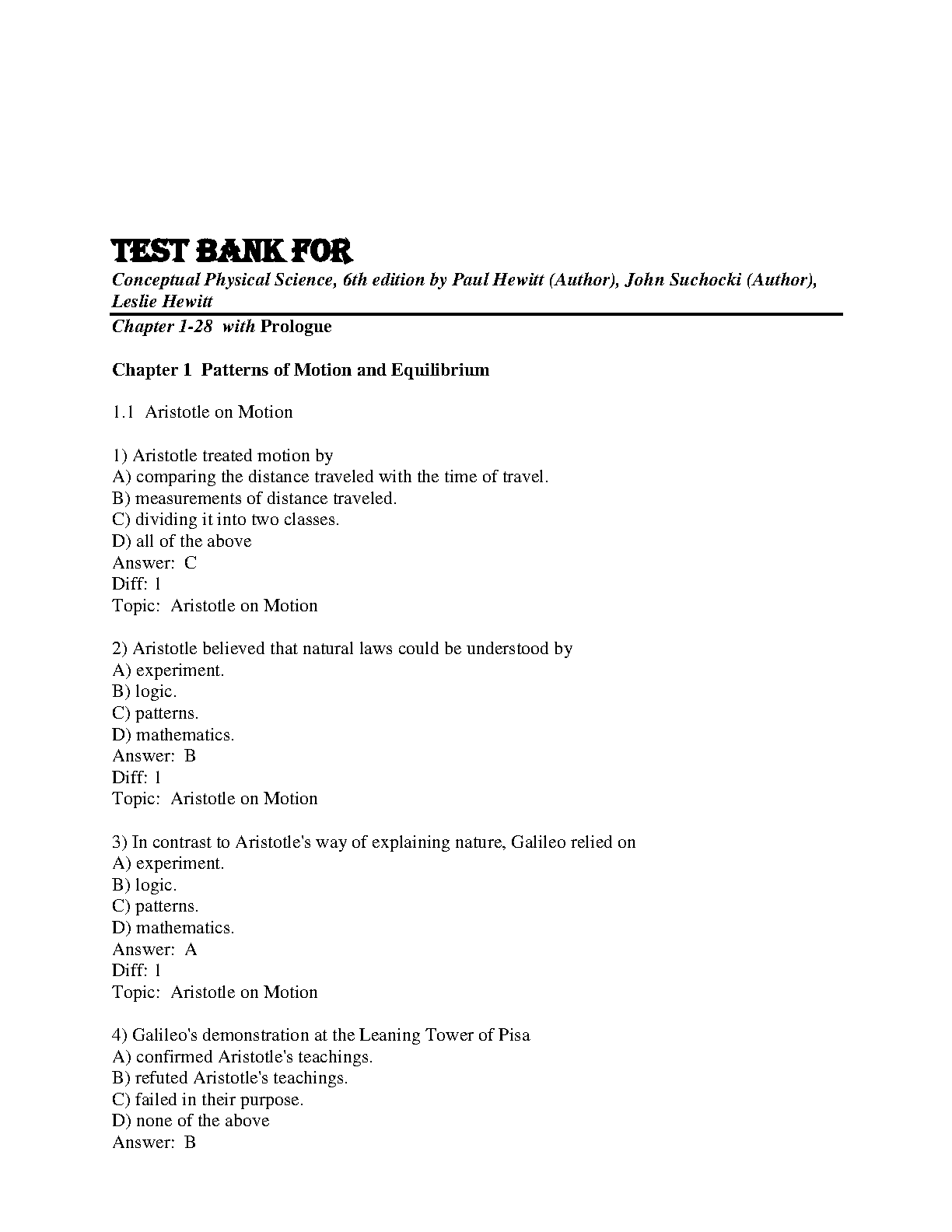 Conceptual Physical Science 6th Edition Test Bank by Paul Hewitt, John Suchocki, and Leslie Hewitt