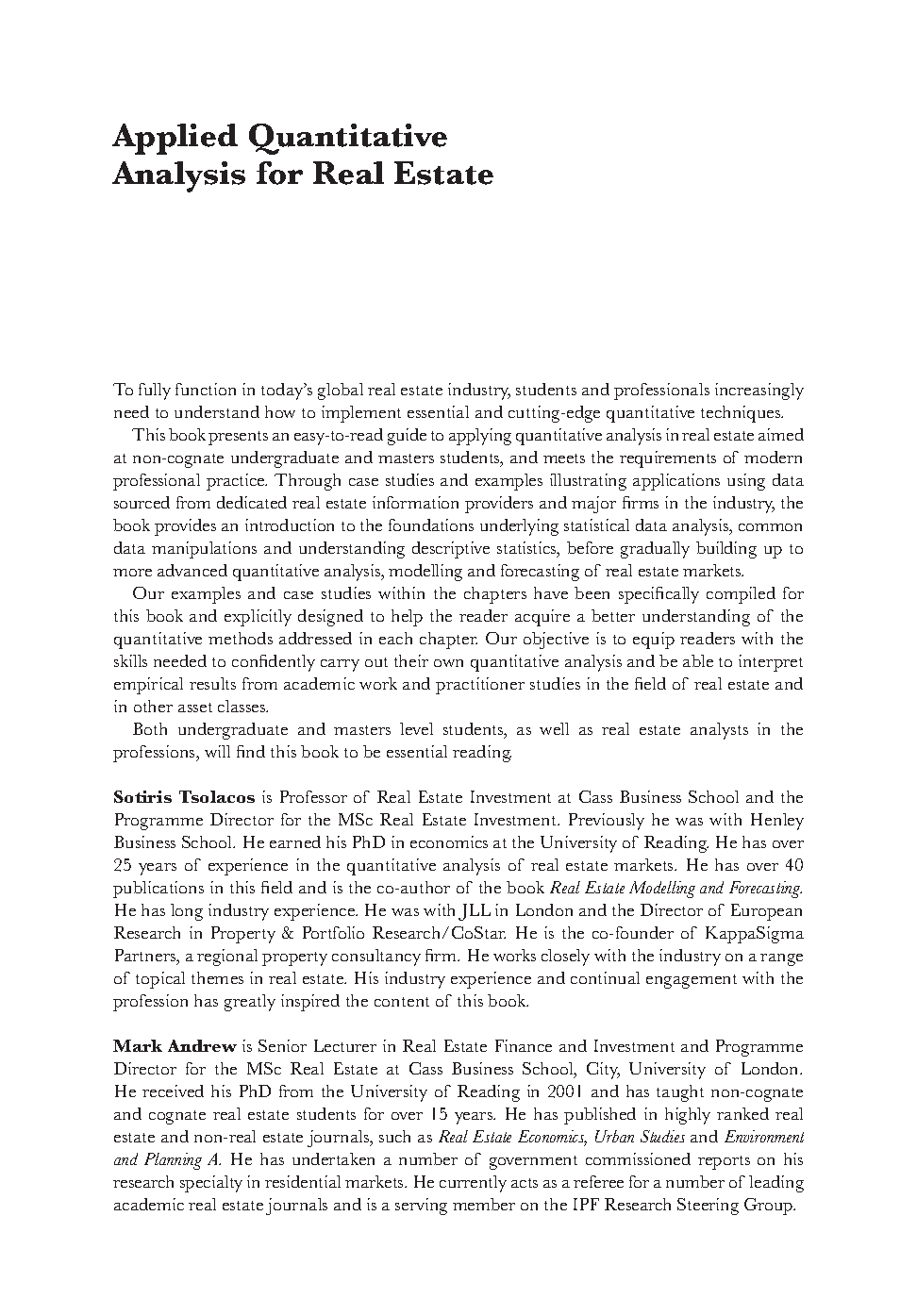 Applied Quantitative Analysis for Real Estate by Sotiris Tsolacos and Mark Andrew