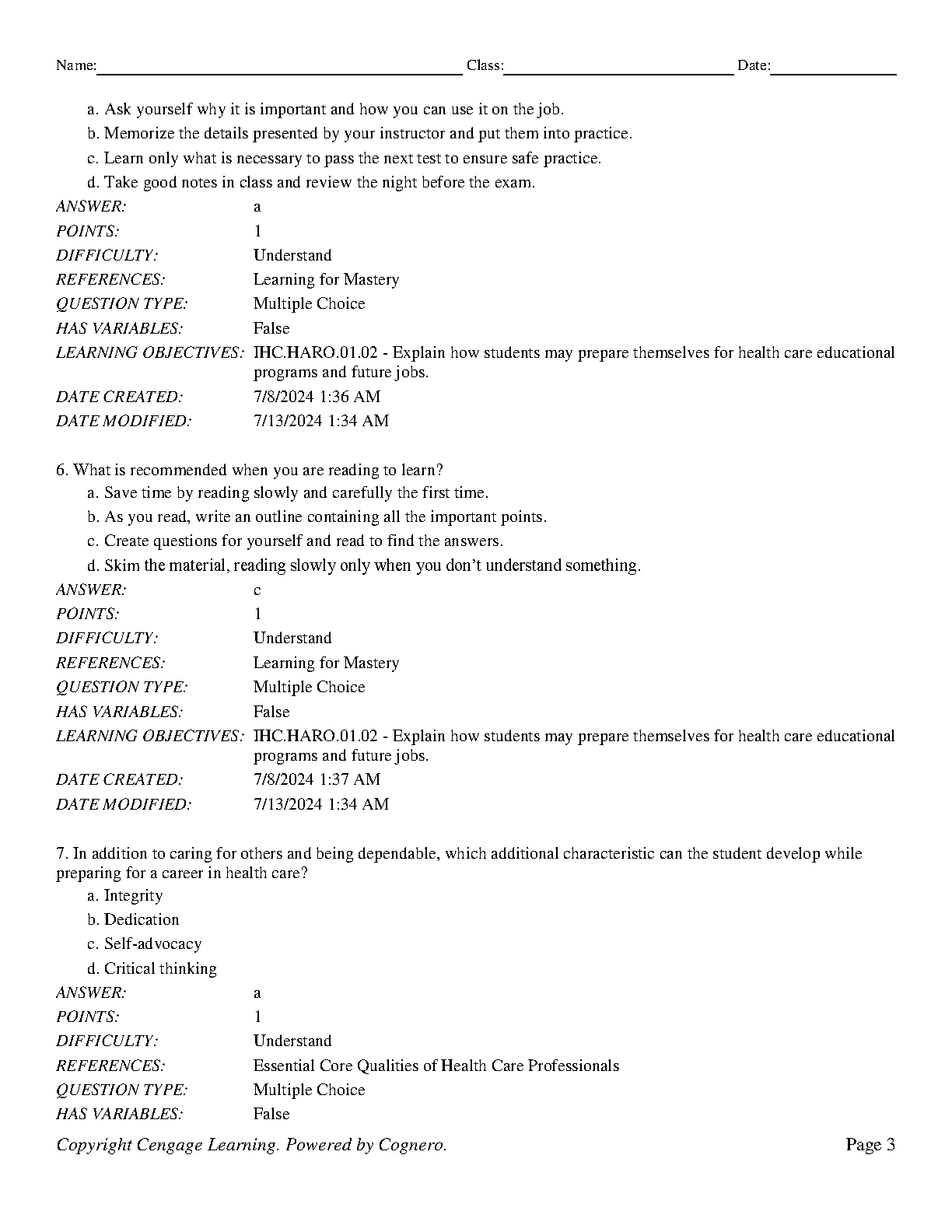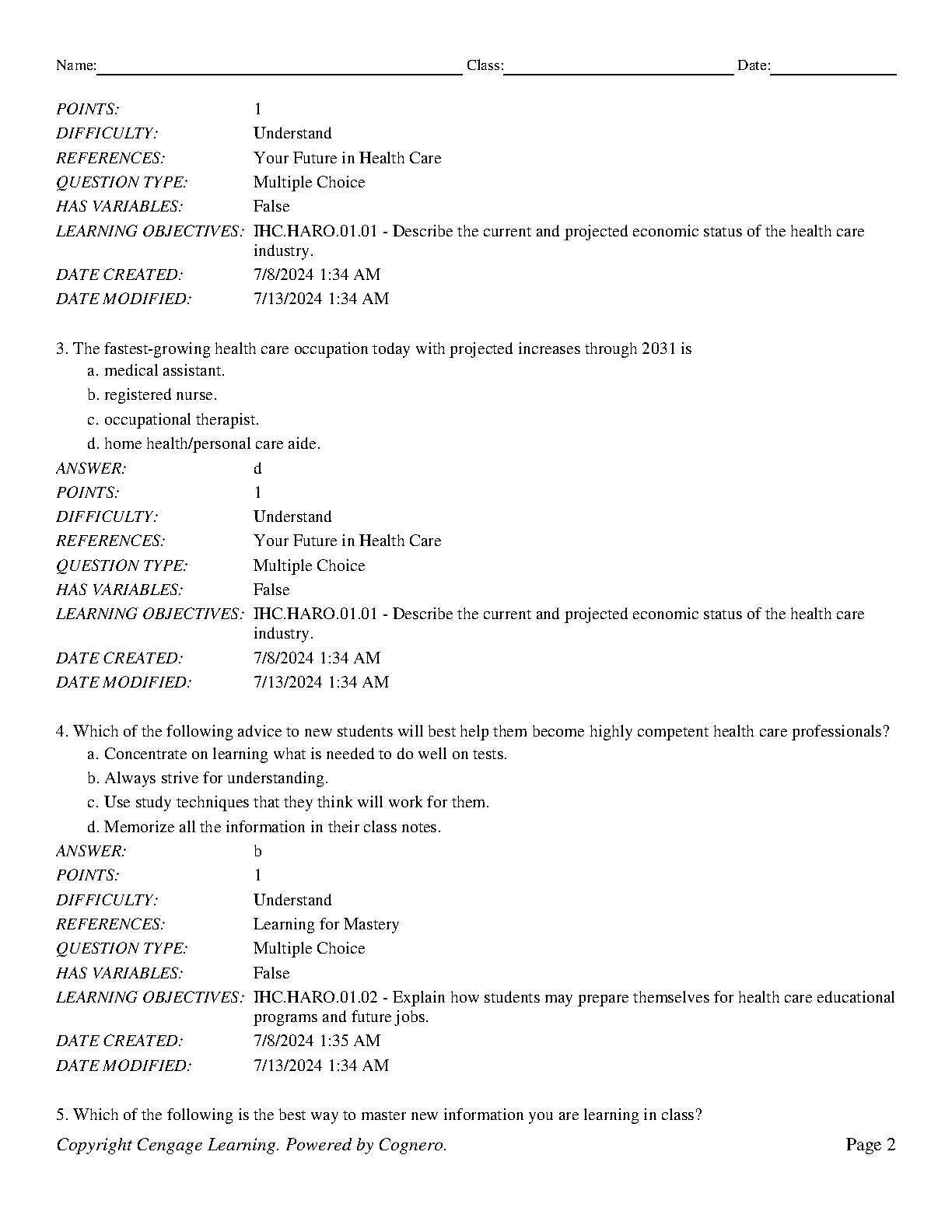 This Test Bank provides comprehensive study materials for Introduction to Health Care, 6th Edition, by Lee Haroun, Dakota Mitchell, and Kaylyn Grammater. Prepare effectively for exams and ace them on your first attempt, avoiding resits.