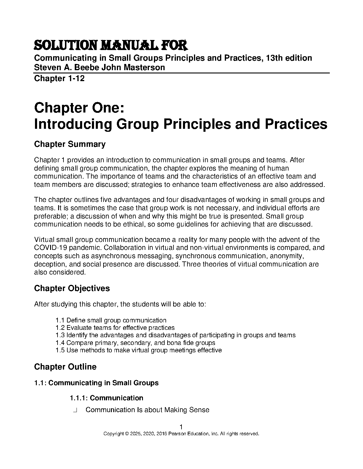 This solution manual provides comprehensive answers and explanations for the exercises and questions in Communicating in Small Groups Principles and Practices, 13th Edition, by Steven A. Beebe and John Masterson. Ideal for students aiming to master the concepts and ace their exams on the first try.
