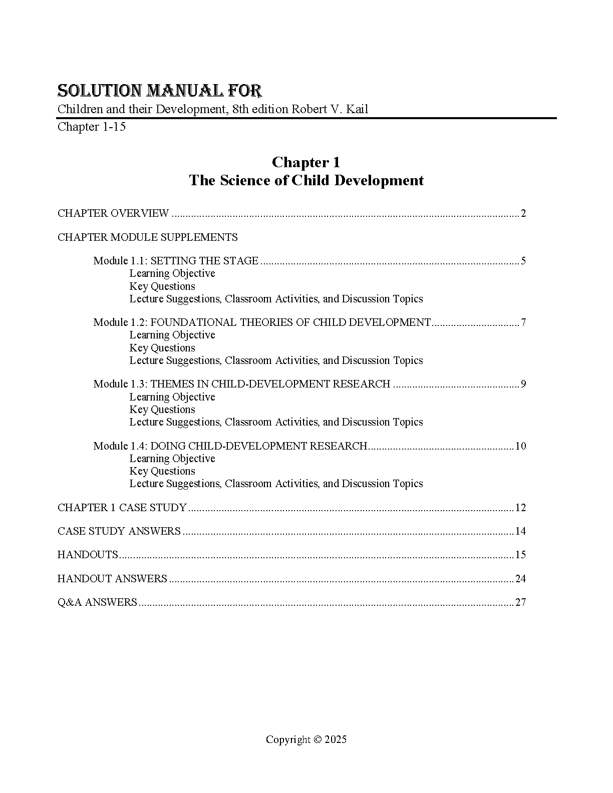 This comprehensive solution manual provides answers and explanations for all the exercises and questions in Robert V. Kail's Children and their Development, 8th edition. It's a valuable resource for students aiming for exam success on their first attempt.