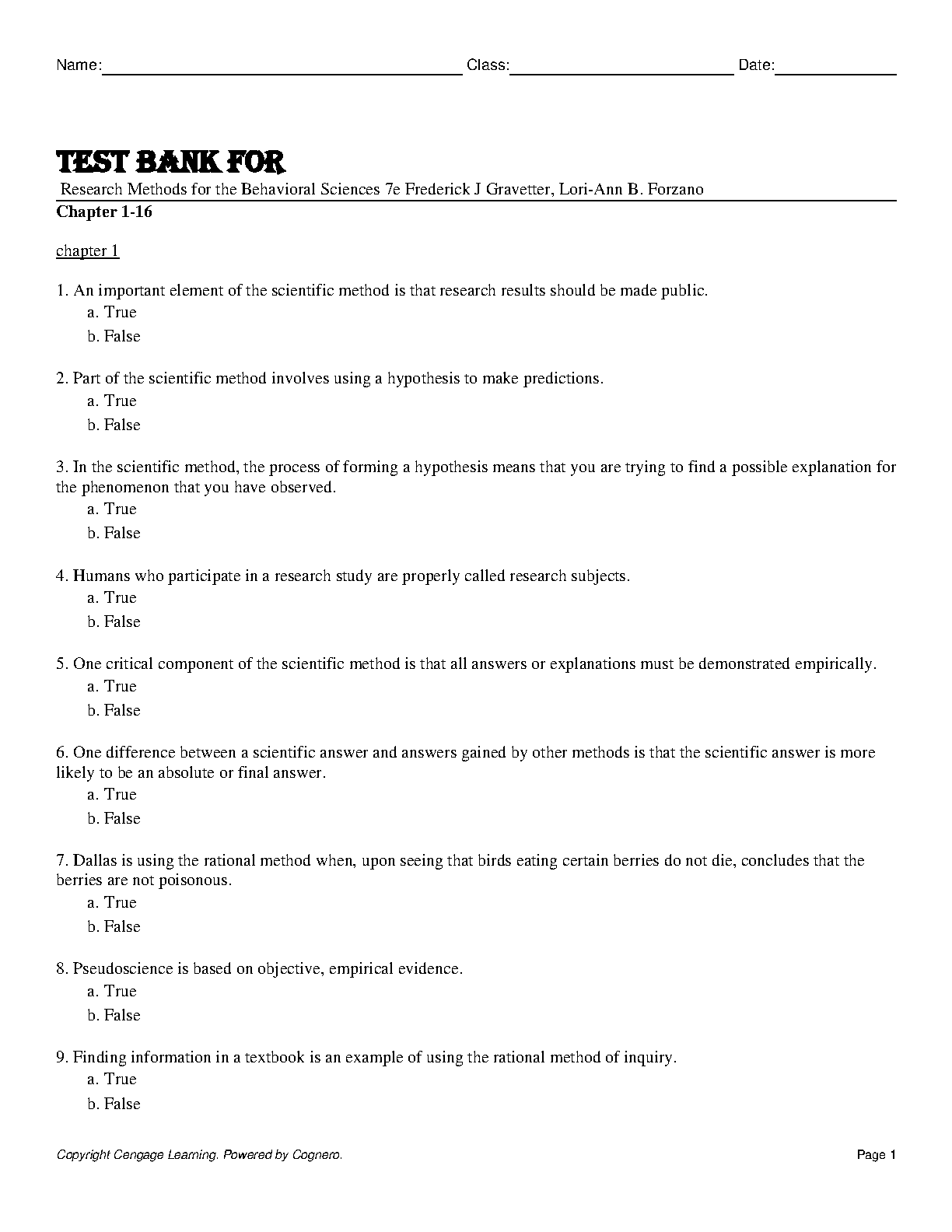 Research Methods for the Behavioral Sciences 7th Edition Test Bank by Frederick J. Gravetter and Lori-Ann B. Forzano