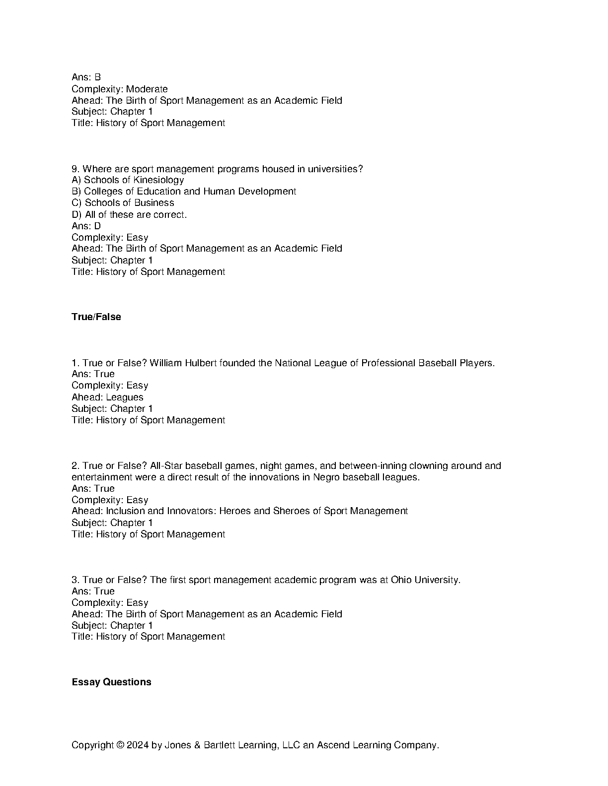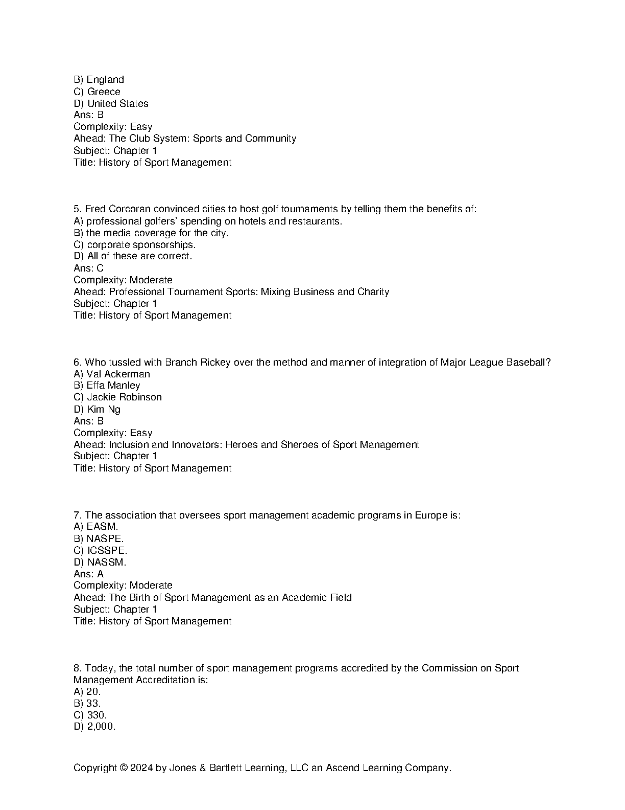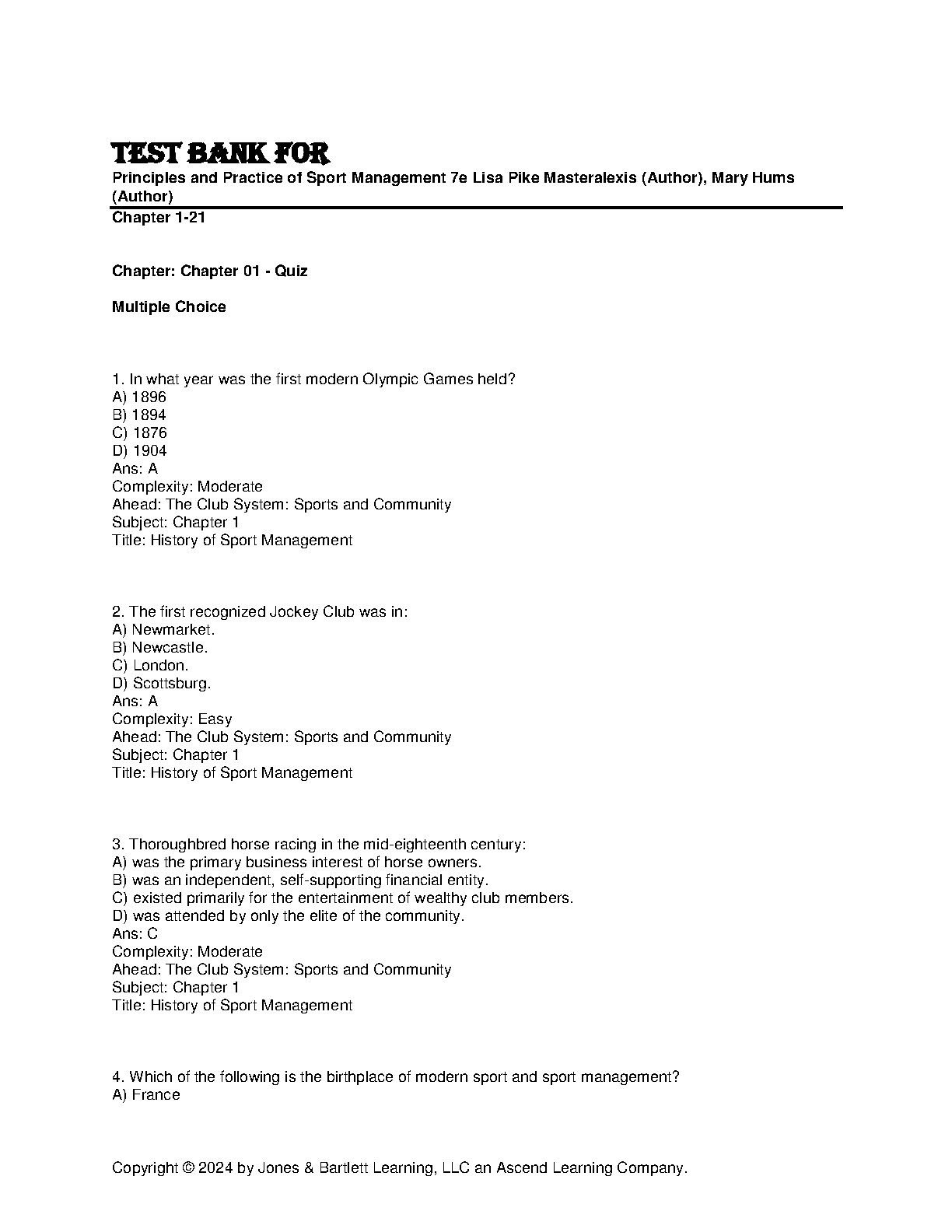 Ace your Principles and Practice of Sport Management 7th edition exam with this comprehensive test bank. Prepare effectively and avoid resits with this invaluable resource for the 2024-2025 academic year.