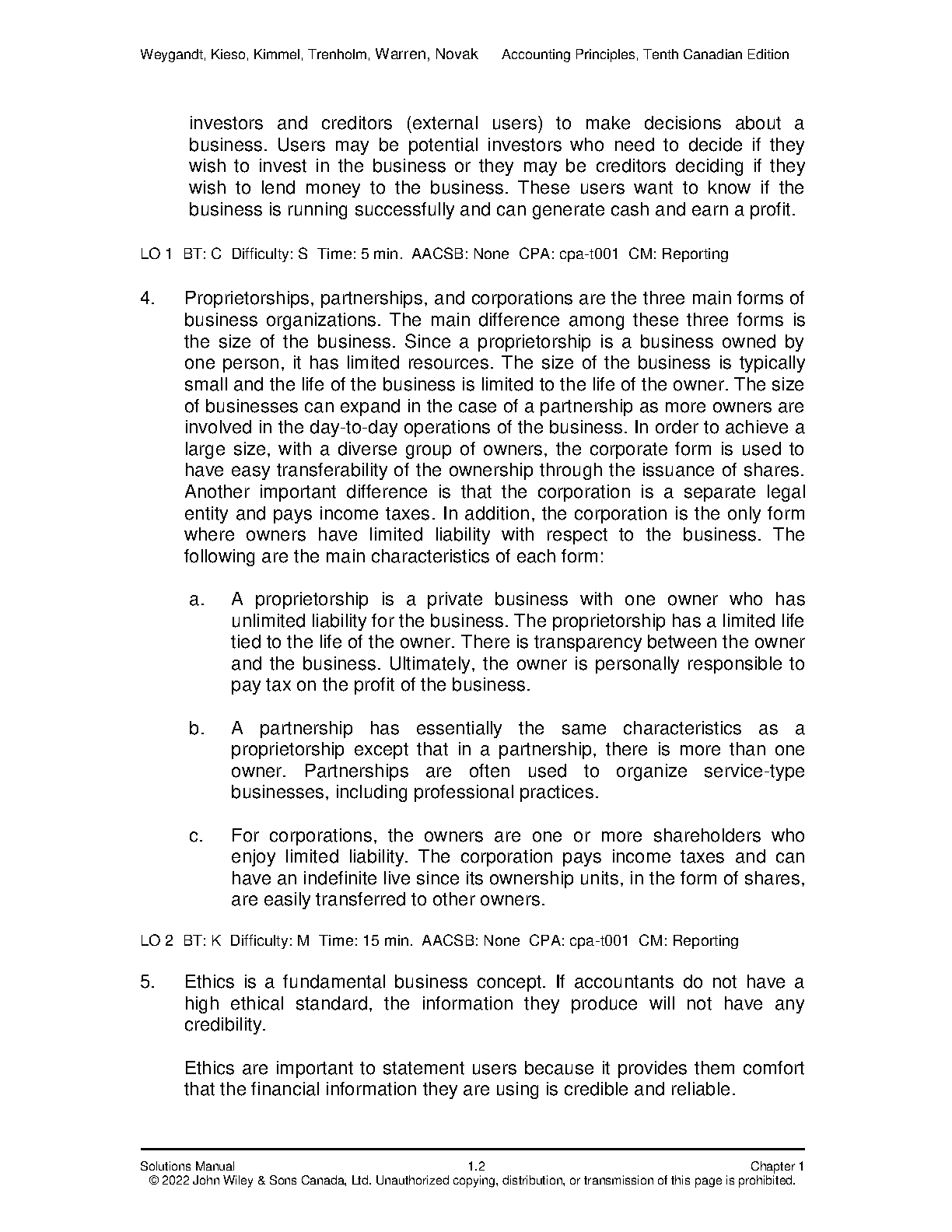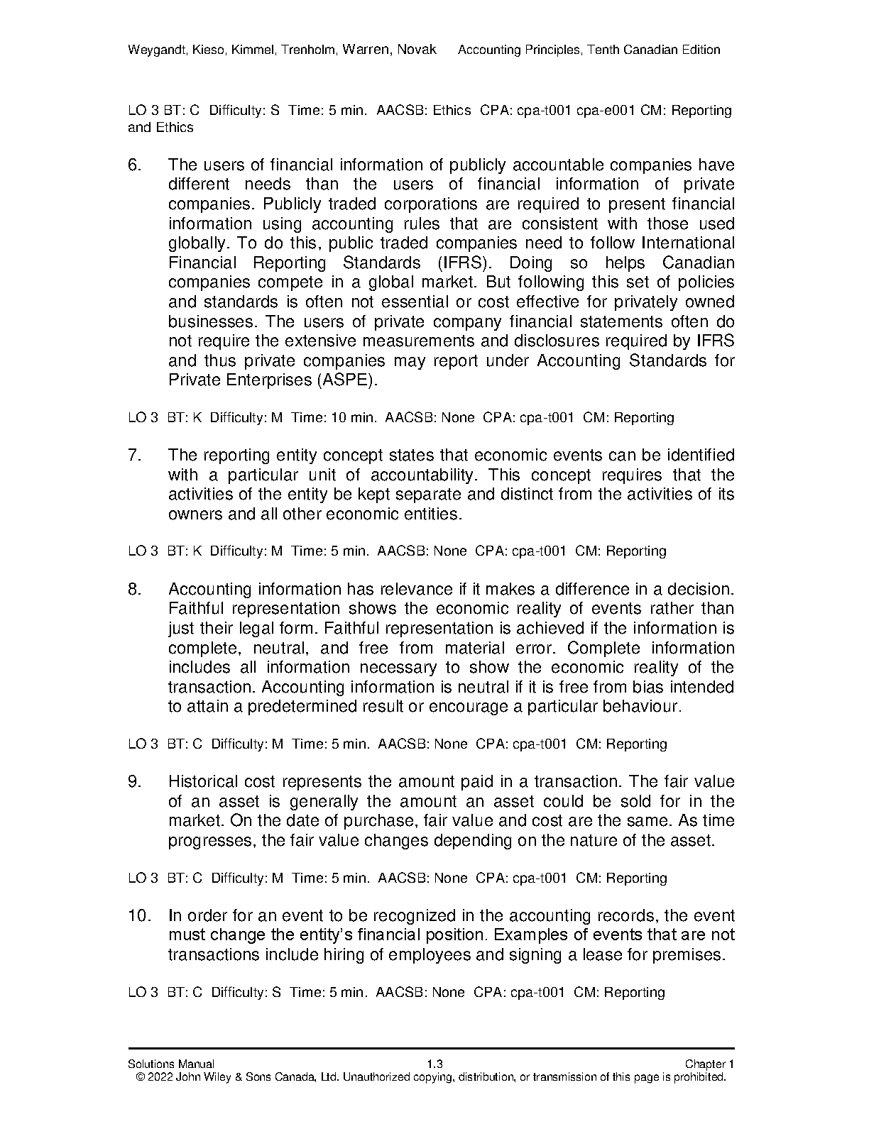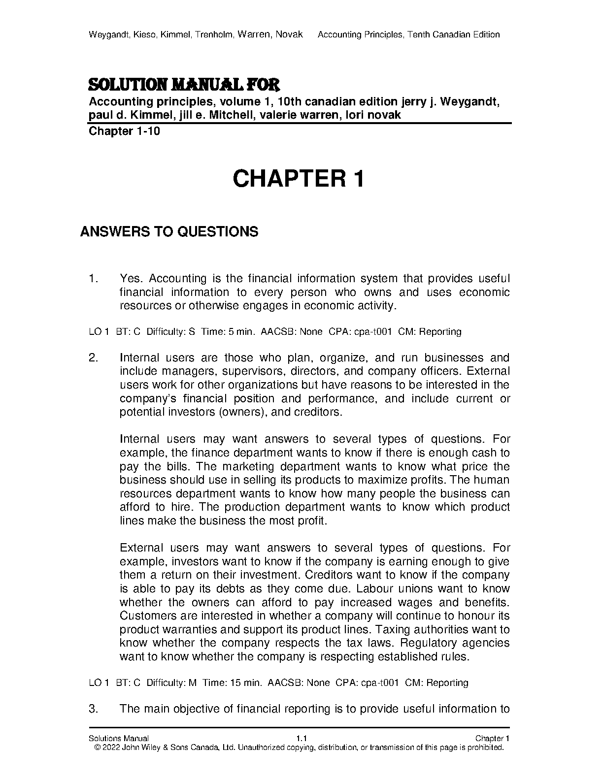 Accounting Principles, Volume 1, 10th Canadian Edition Solution Manual by Jerry J. Weygandt, Paul D. Kimmel, Jill E. Mitchell, Valerie Warren, Lori Novak