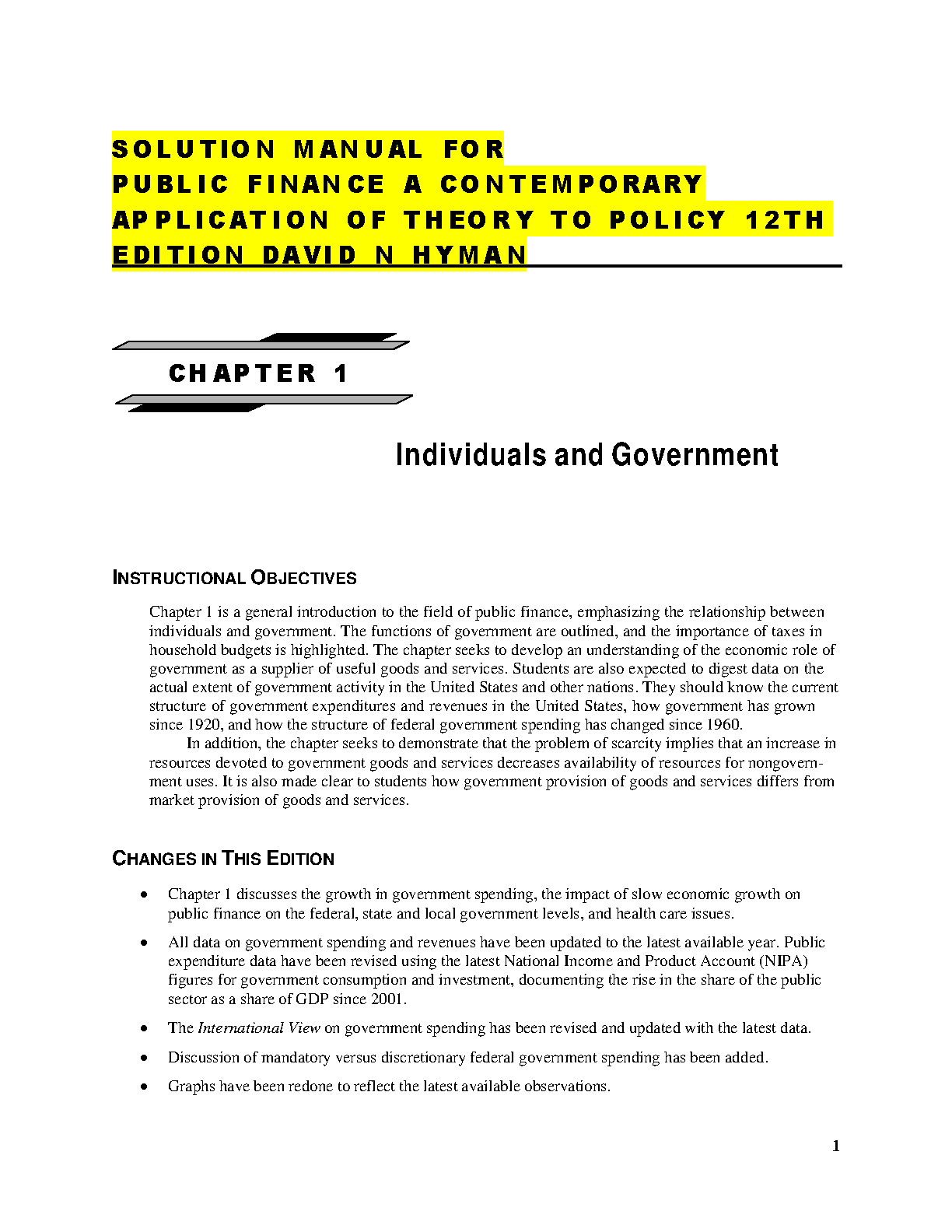 Solution Manual for Public Finance: A Contemporary Application of Theory to Policy, 12th Edition by David N. Hyman