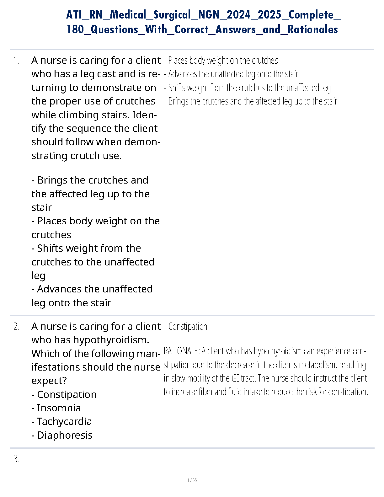 ATI RN Medical Surgical NGN 2024-2025 Complete 180 Questions with Correct Answers and Rationales by Unknown Author