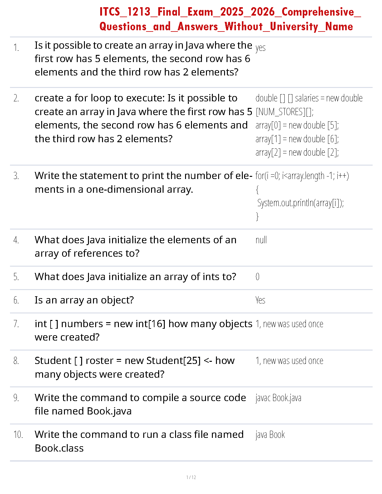 ITCS 1213 Final Exam 2025-2026 Comprehensive Questions and Answers by [Author Name - if available online]