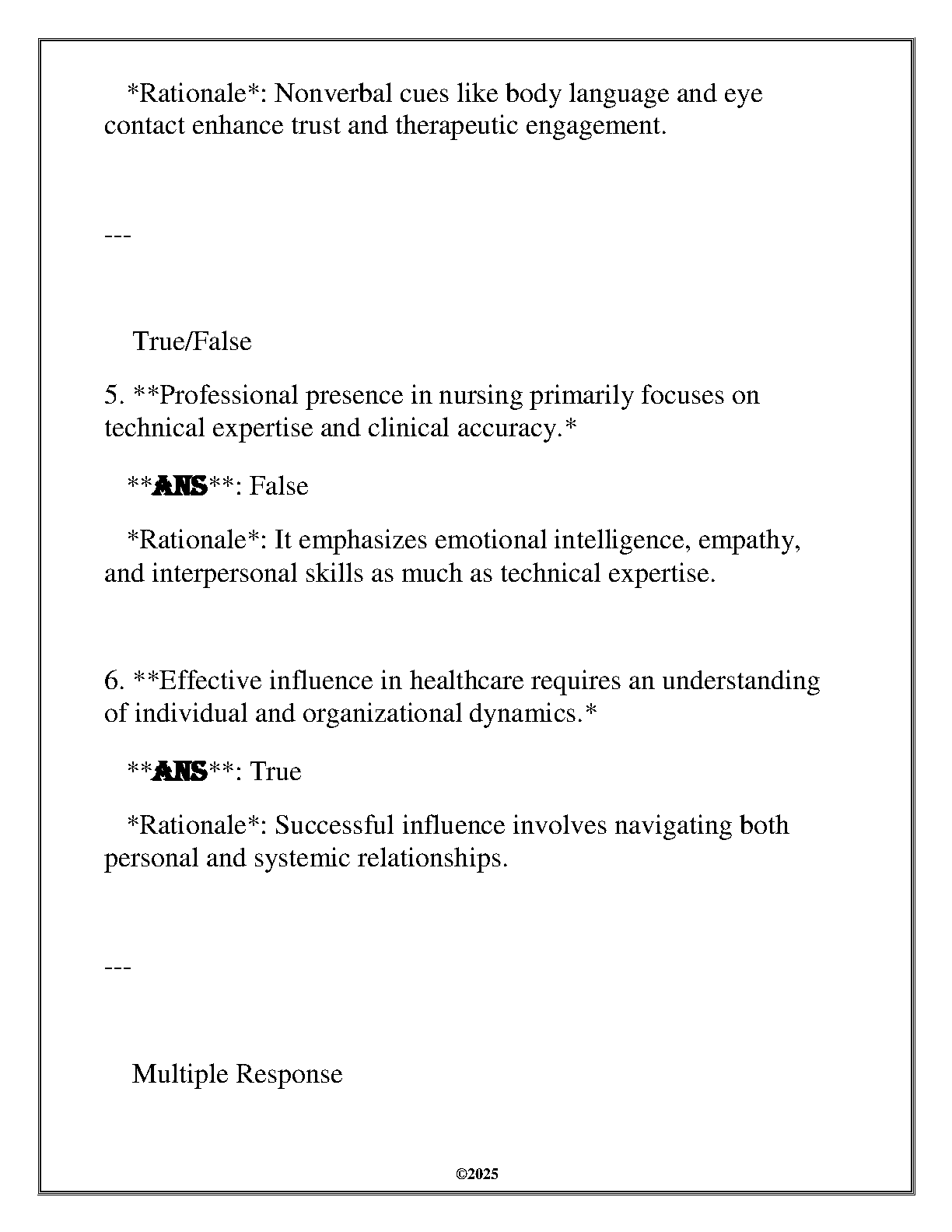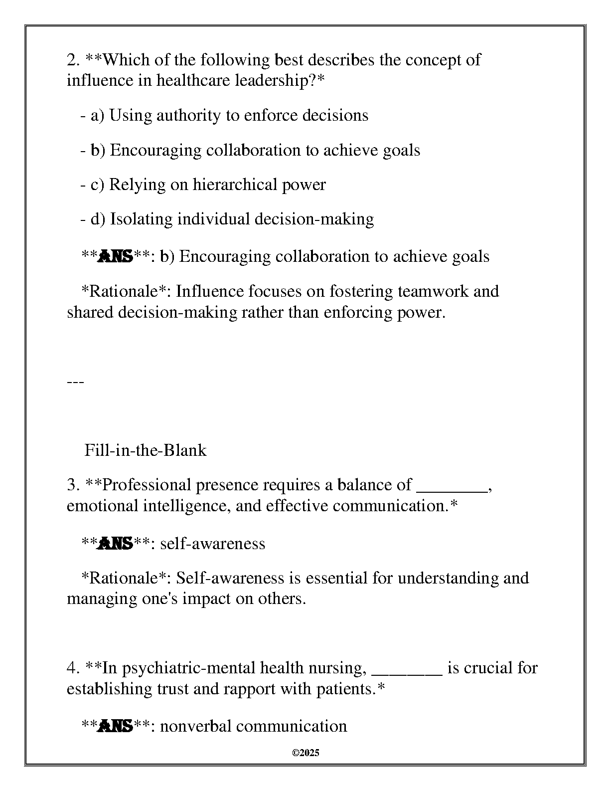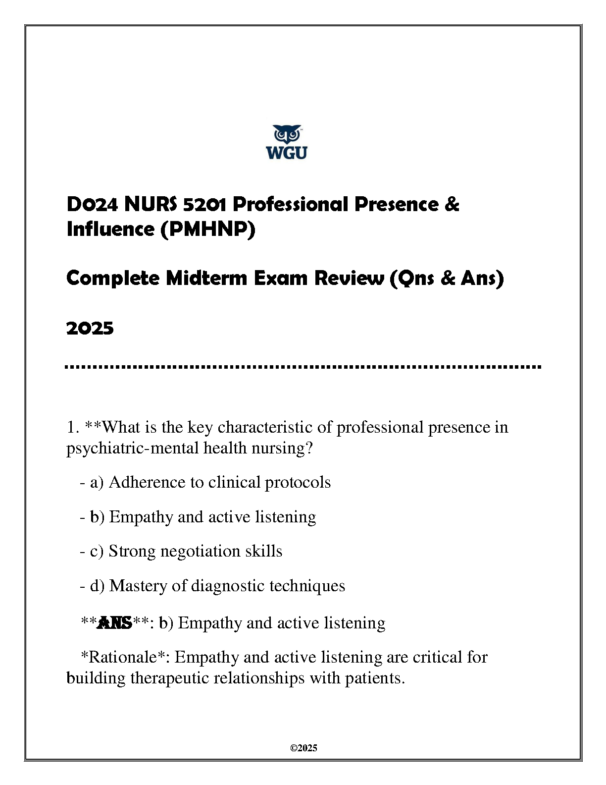 WGU NURS 5201 Professional Presence & Influence (PMHNP) Complete Midterm Exam Review 2025: Questions and Answers