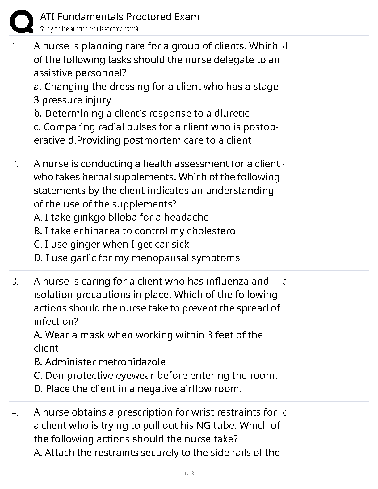 ATI Fundamentals Proctored Exam: Practice Questions for Success in 2024-2025