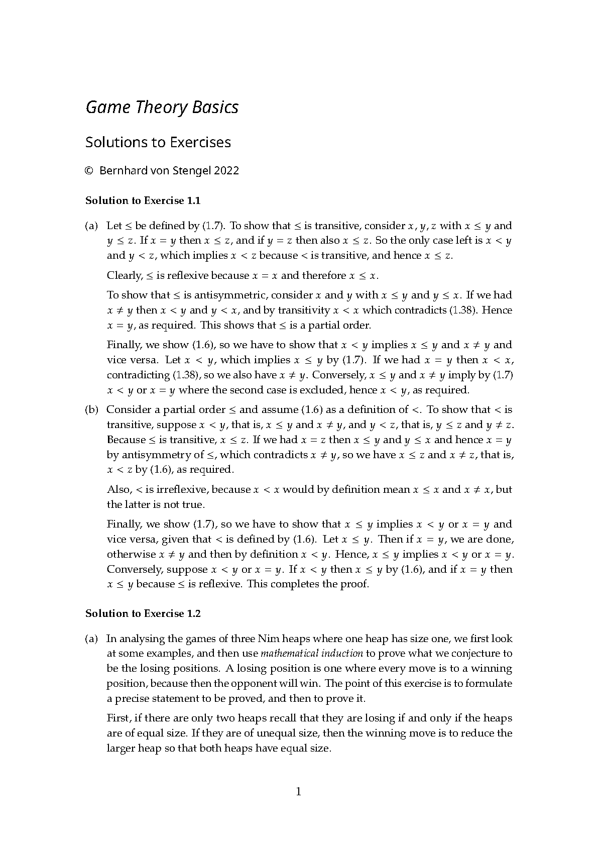 Game Theory Basics Solutions Manual by Bernhard von Stengel