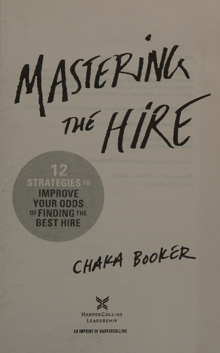 Mastering the Hire: 12 Strategies to Improve Your Odds of Finding the Best Hire (2020 Edition) by Chaka Booker