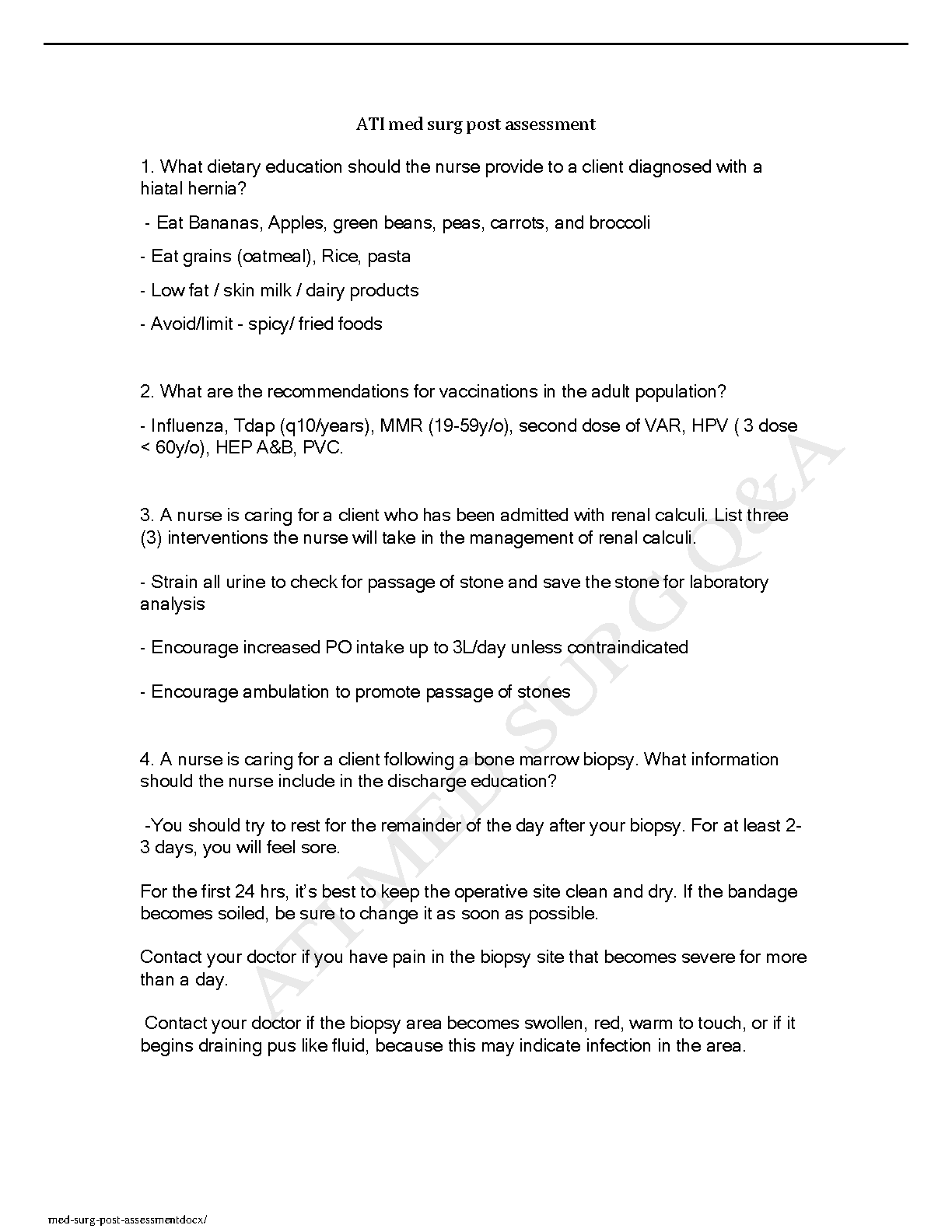 ATI med surg post assessment WITH CORRECT ANSWERS 2023. DOWNLOAD on www.hackedexams.com INSTANTLY.