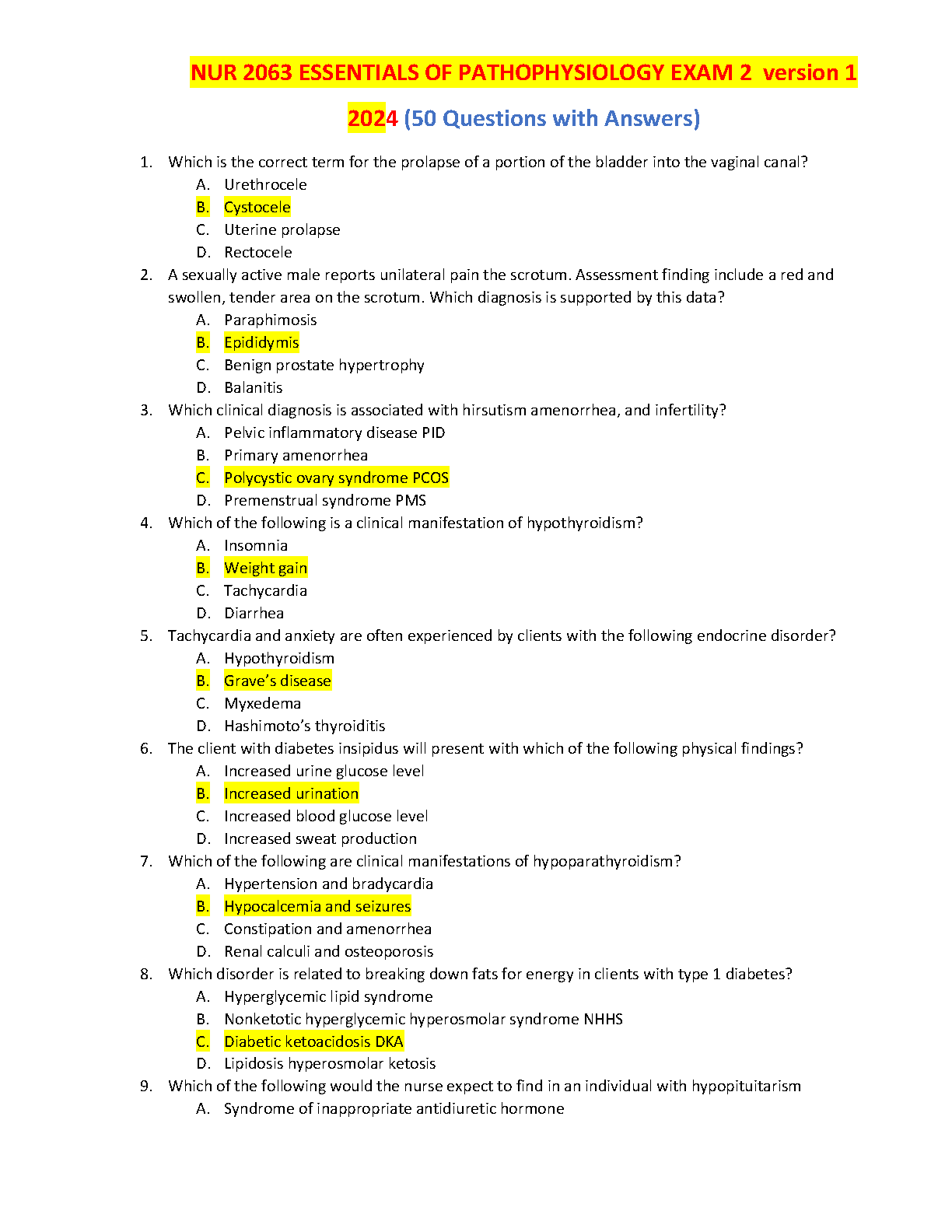 Ace your NUR 2063 Essentials of Pathophysiology Exam 2 with this comprehensive 2024 edition question bank. 50 questions with answers cover key concepts to ensure first-attempt exam success and prevent resits.