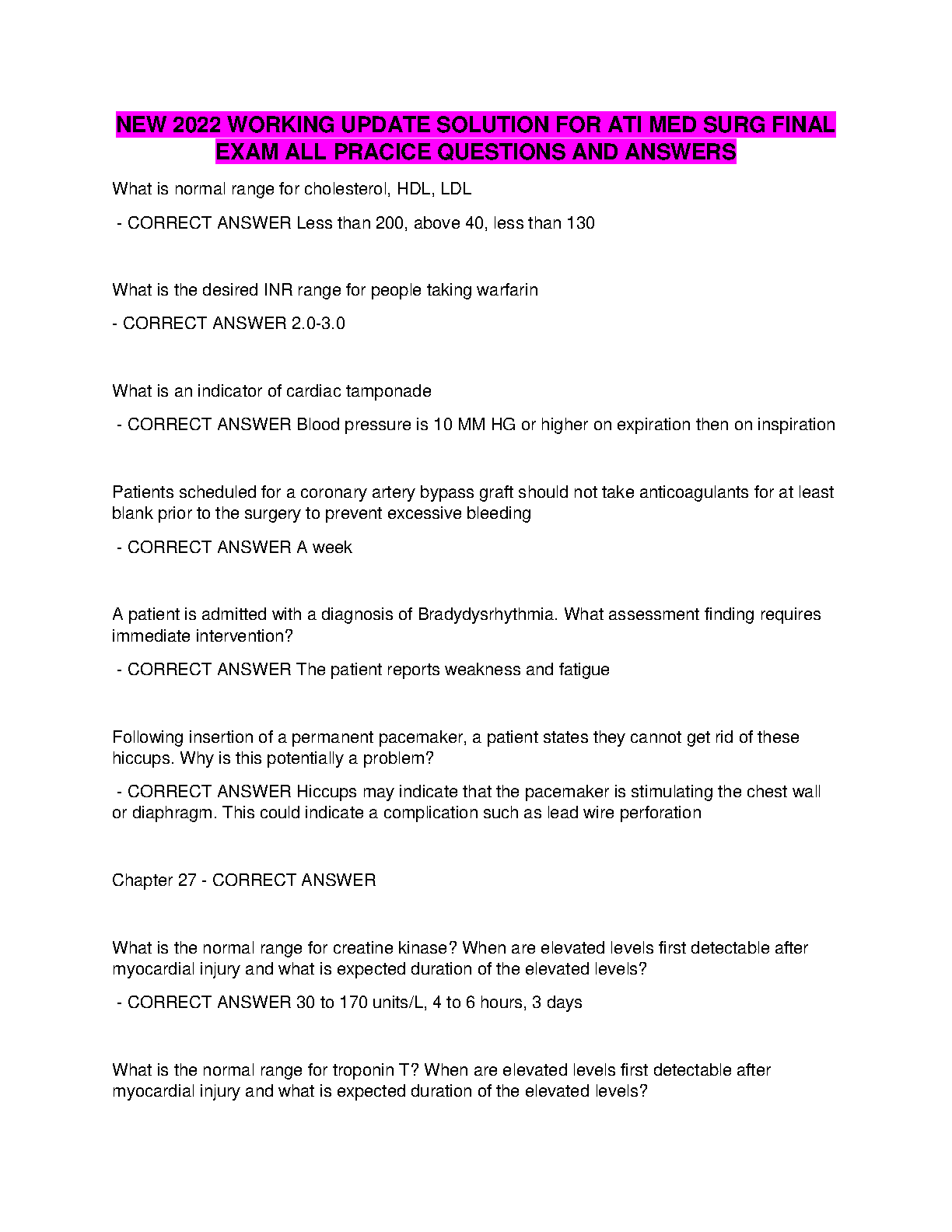 NEW WORKING UPDATE SOLUTION FOR ATI MED SURG FINAL EXAM ALL PRACTICE QUESTIONS AND ANSWERS LATEST SOLUTIONS 2023. DOWNLOAD on www.hackedexams.com INSTANTLY.