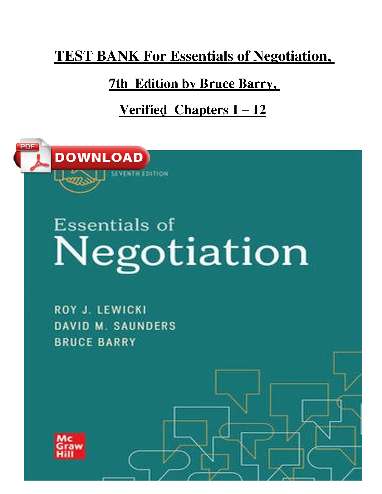 Essentials of Negotiation, 7th Edition Test Bank by Roy J. Lewicki, David M. Saunders, and Bruce Barry