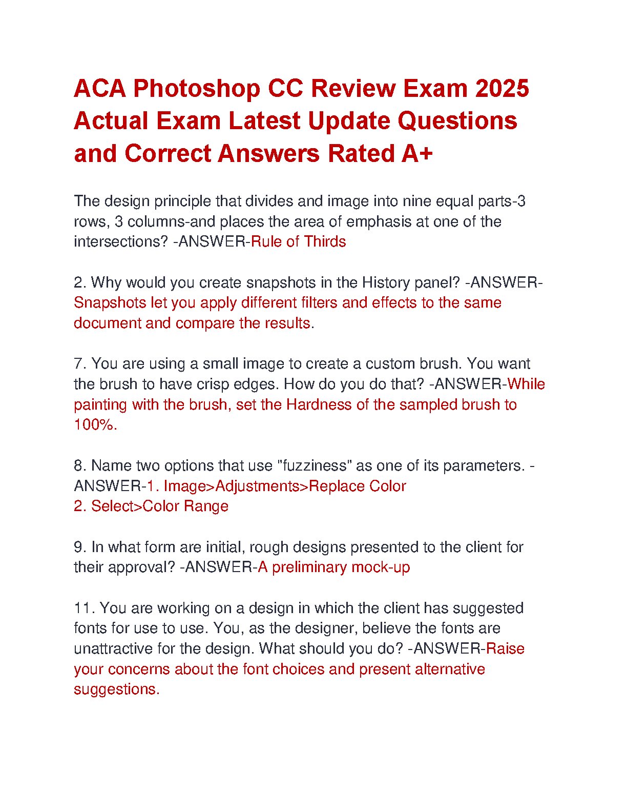 ACA Photoshop CC Review Exam 2025: Actual Exam Questions and Answers Rated A+ by [Author Name - If available online, otherwise remove this part]