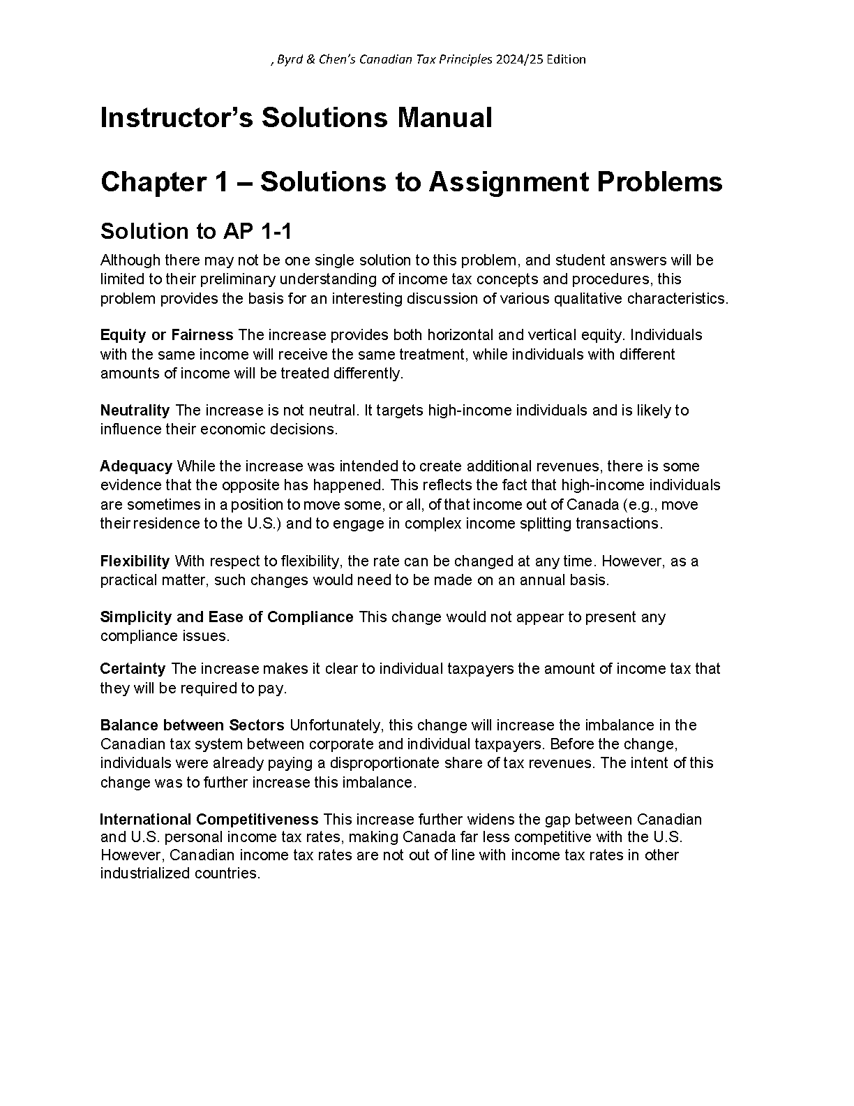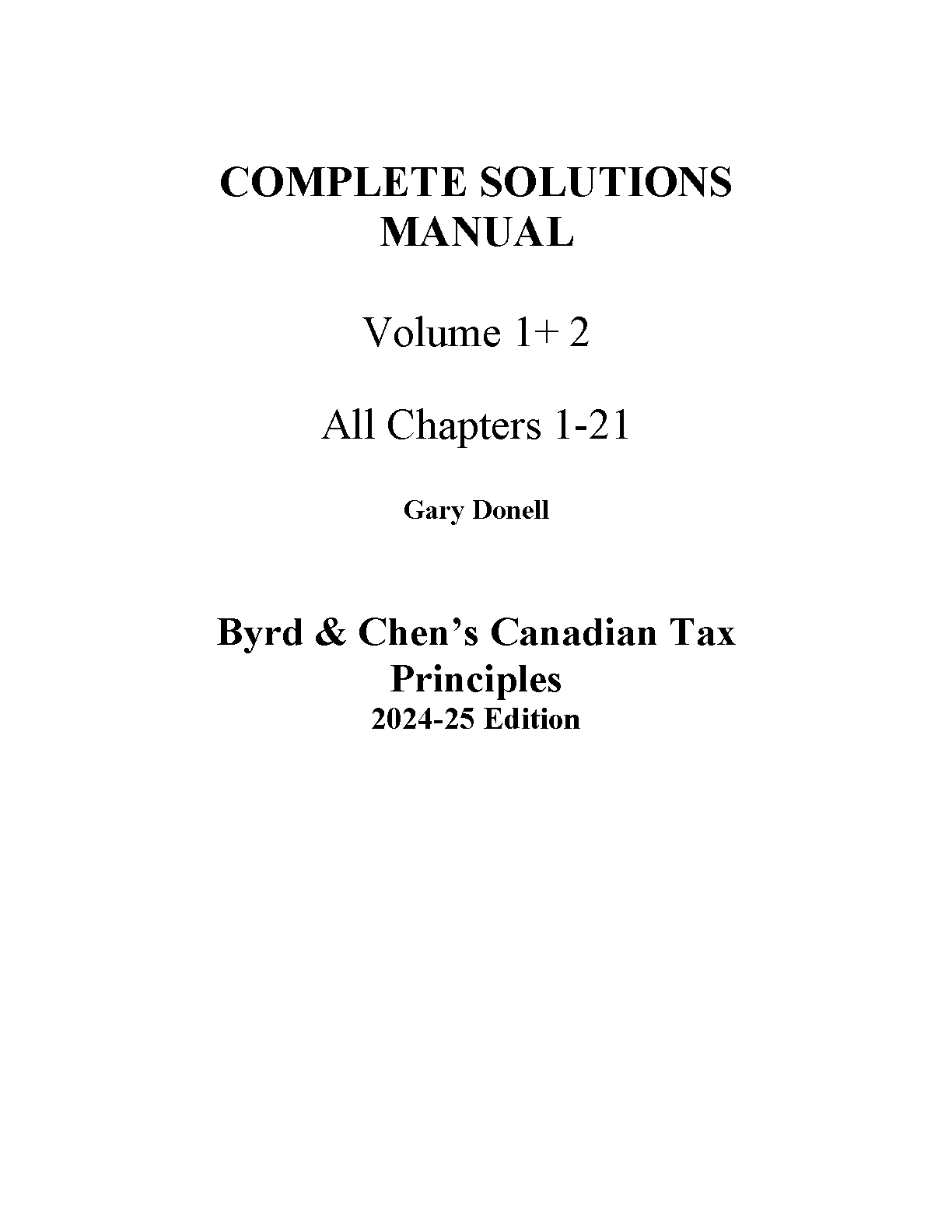 Solutions Manual for Byrd & Chen's Canadian Tax Principles, Volumes 1 & 2, and Study Guide - 2024-2025 Edition by Byrd, Chen, and Donell