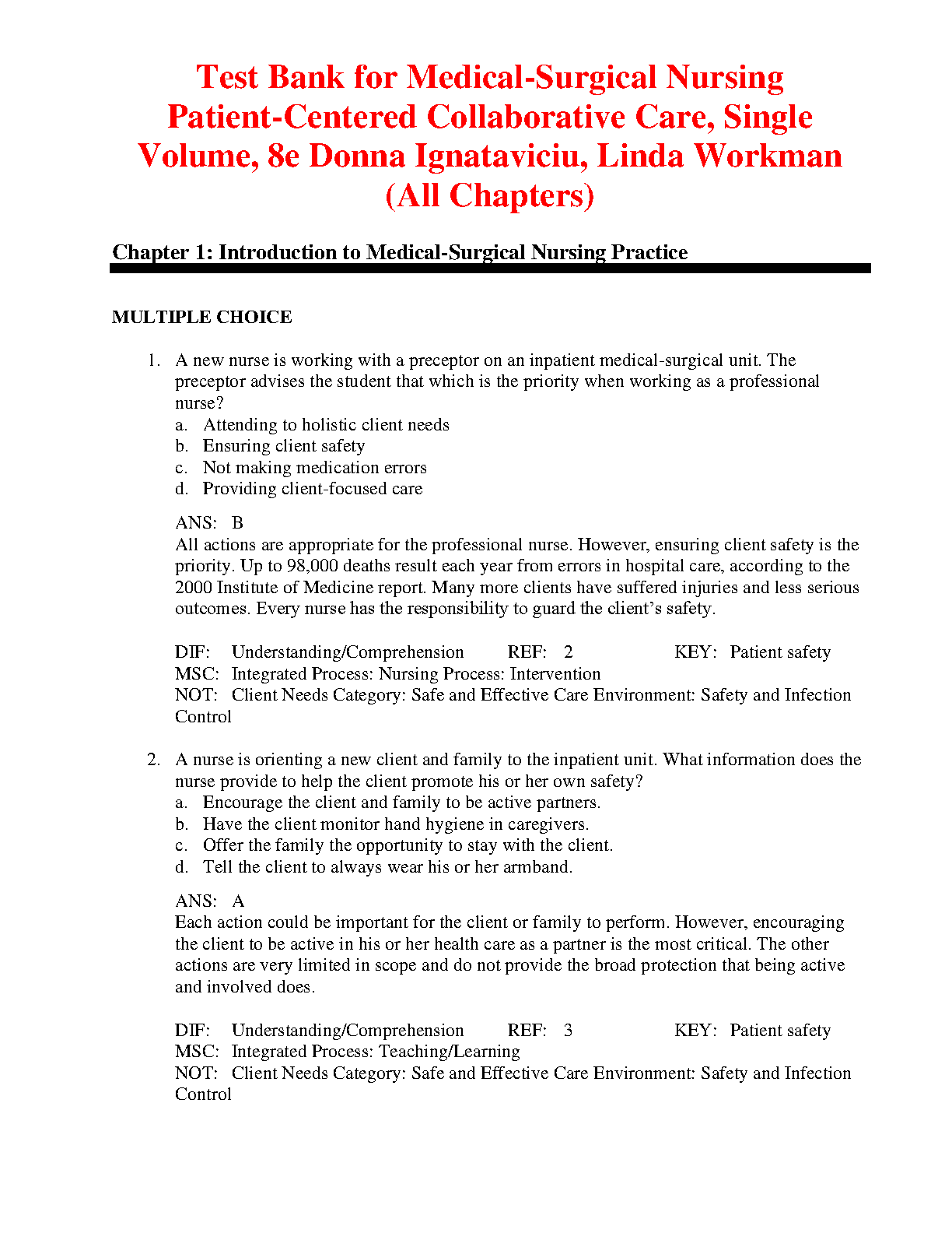 Test Bank for Medical-Surgical Nursing Patient-Centered Collaborative Care, Single Volume, 8e Donna Ignataviciu, Linda Workman (All Chapters) BRAND NEW!!!