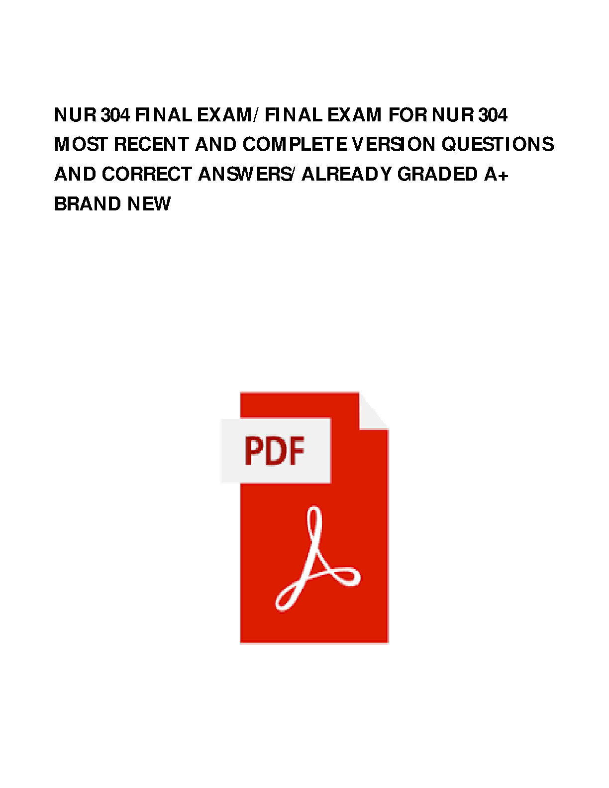 Ace your NUR 304 final exam with this comprehensive study guide! This most recent and complete version includes questions and answers, already graded A+. Get ready to pass on your first attempt and avoid resits. Brand new for the 2024-2025 academic year.