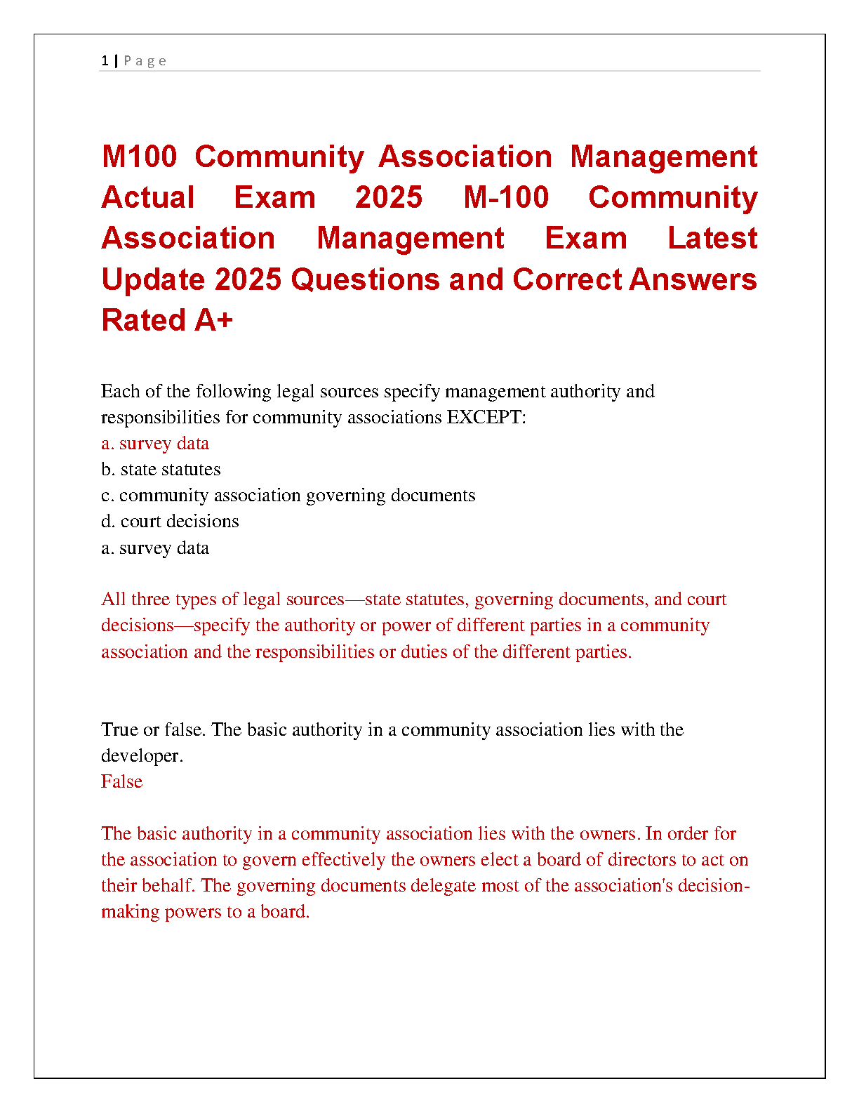 Ace your M100 Community Association Management exam with this latest 2025 update featuring questions and answers rated A+. This comprehensive resource is designed to help students pass on their first attempt, eliminating the need for resits.
