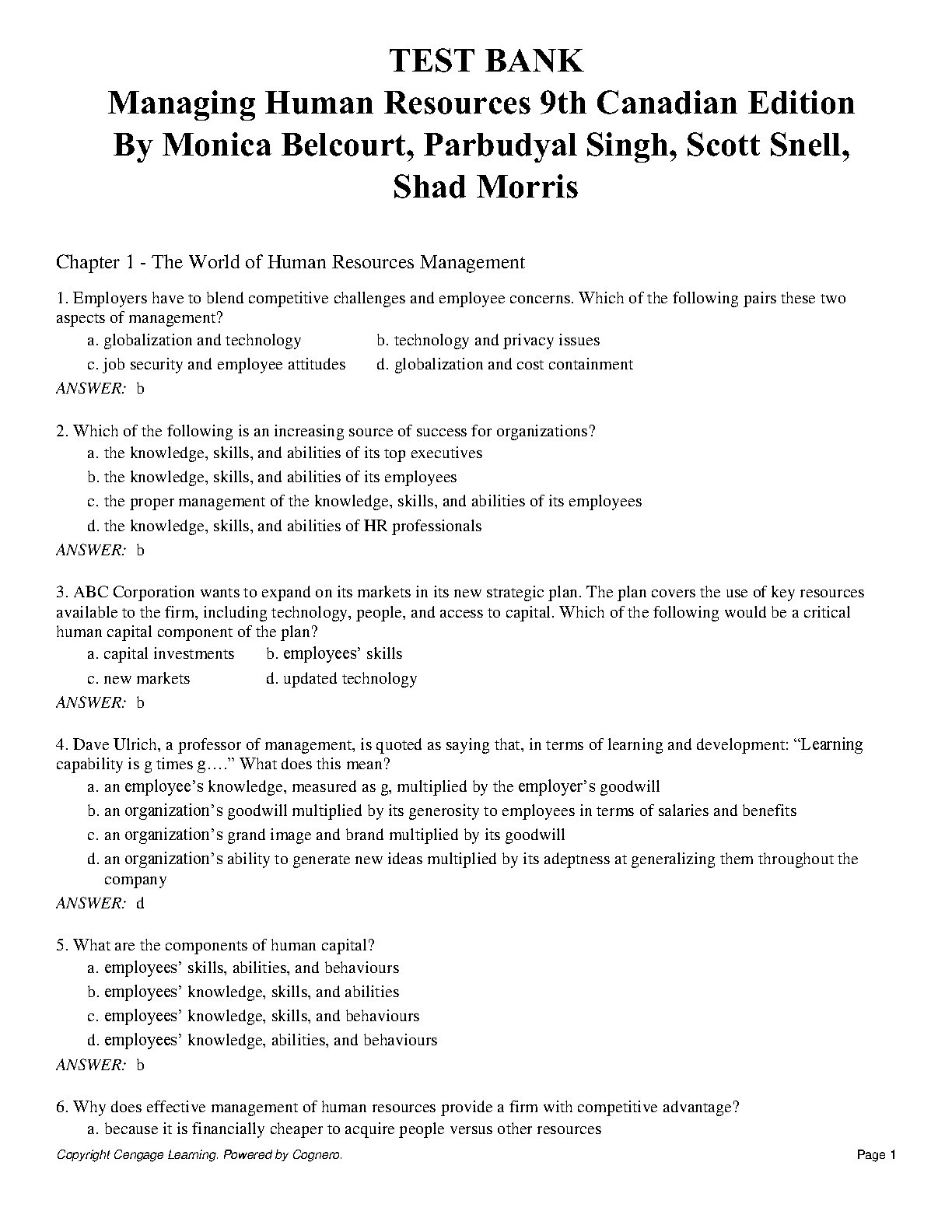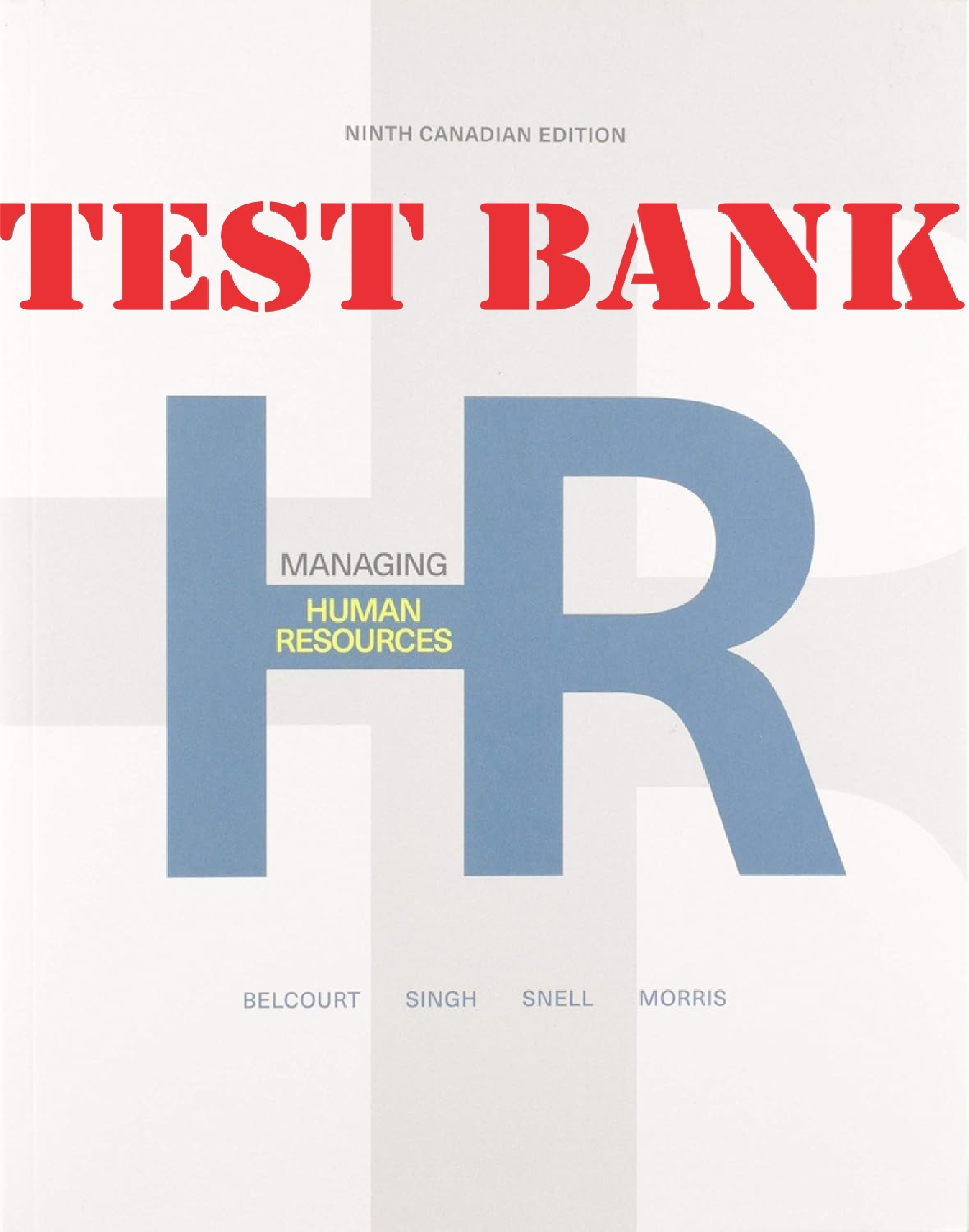 Test Bank for Managing Human Resources, Ninth Canadian Edition by Belcourt, Singh, Snell, and Morris