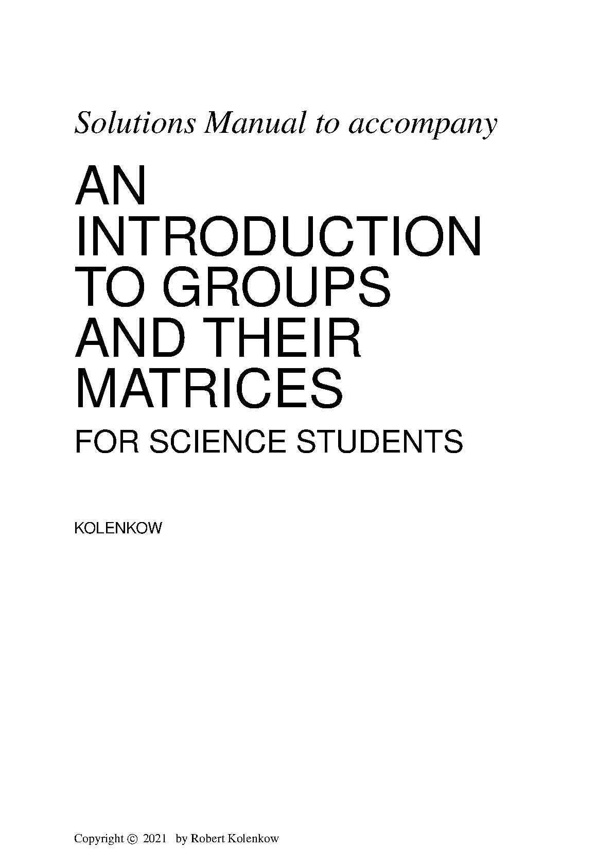 Solutions Manual to An Introduction to Groups and Their Matrices for Science Students by Robert Kolenkow