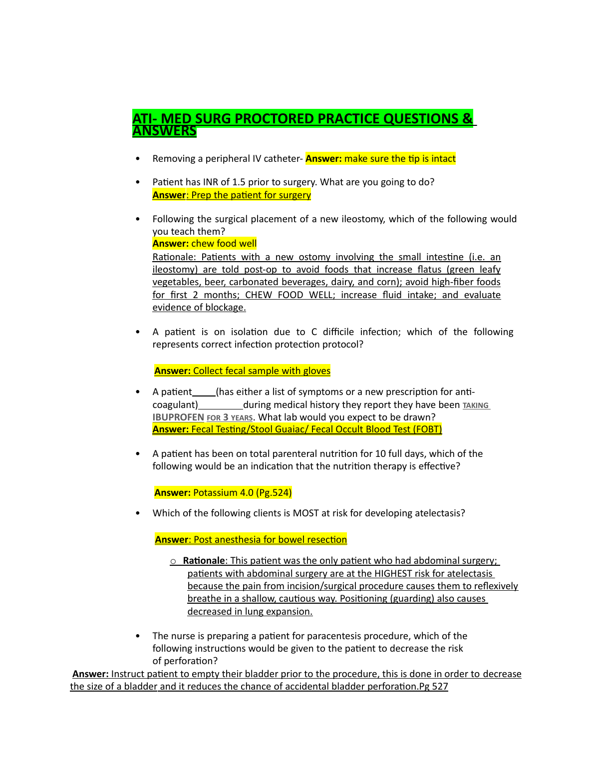 ATI- MED SURG PROCTORED PRACTICE QUESTIONS & ANSWERS RATED A+