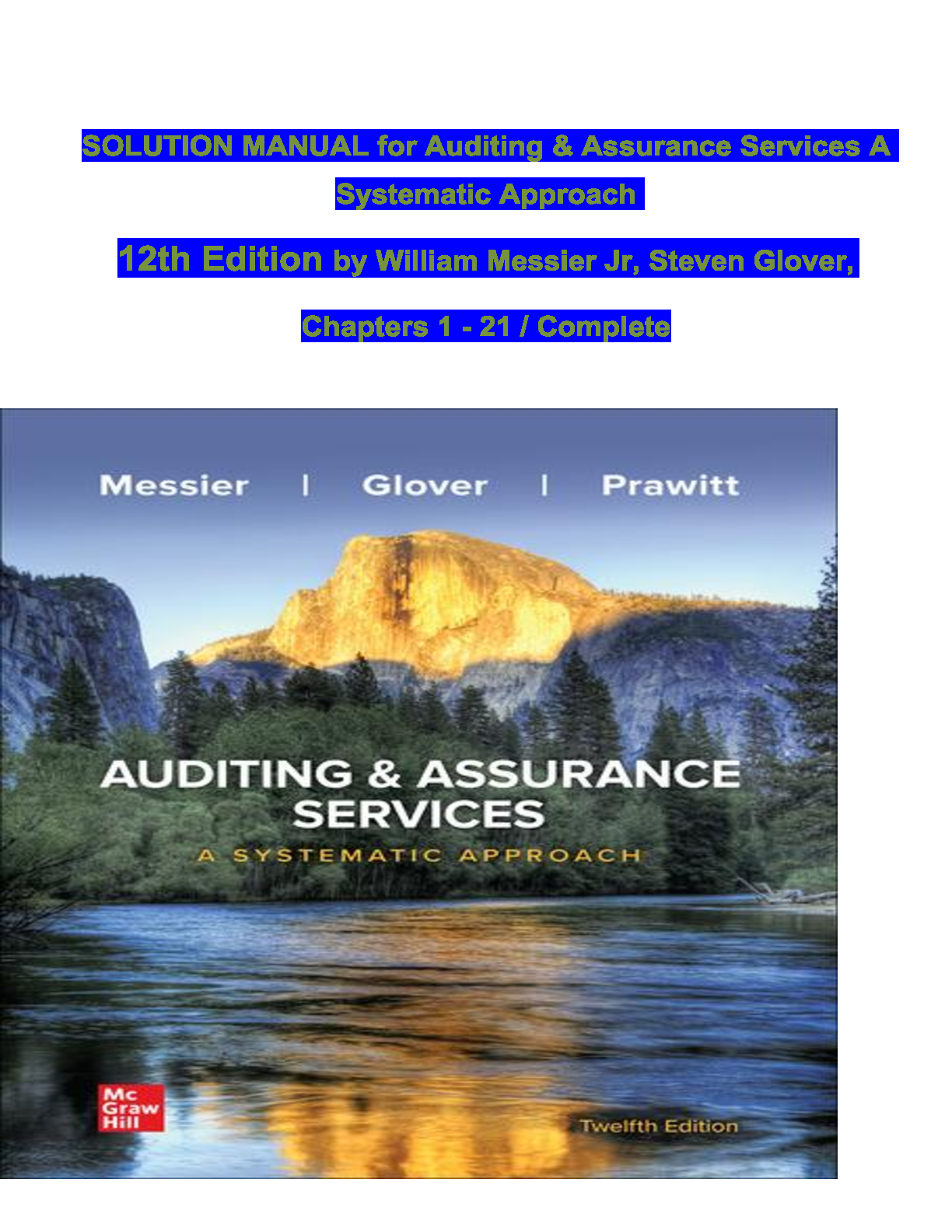 Ace your Auditing & Assurance Services course with this comprehensive solution manual for the 12th edition by Messier, Glover, and Prawitt. This complete guide covers all 21 chapters, providing detailed explanations and solutions to help you master the material and achieve exam success on your first try.