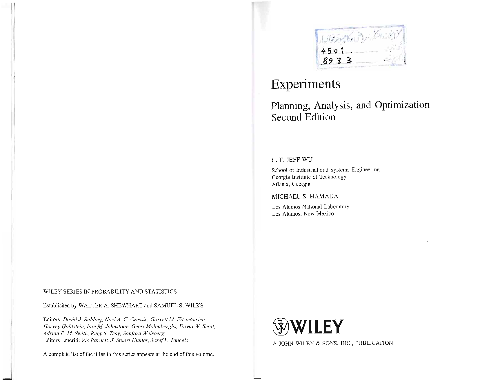 Experiments: Planning, Analysis, and Optimization, Second Edition by C. F. Jeff Wu and Michael S. Hamada