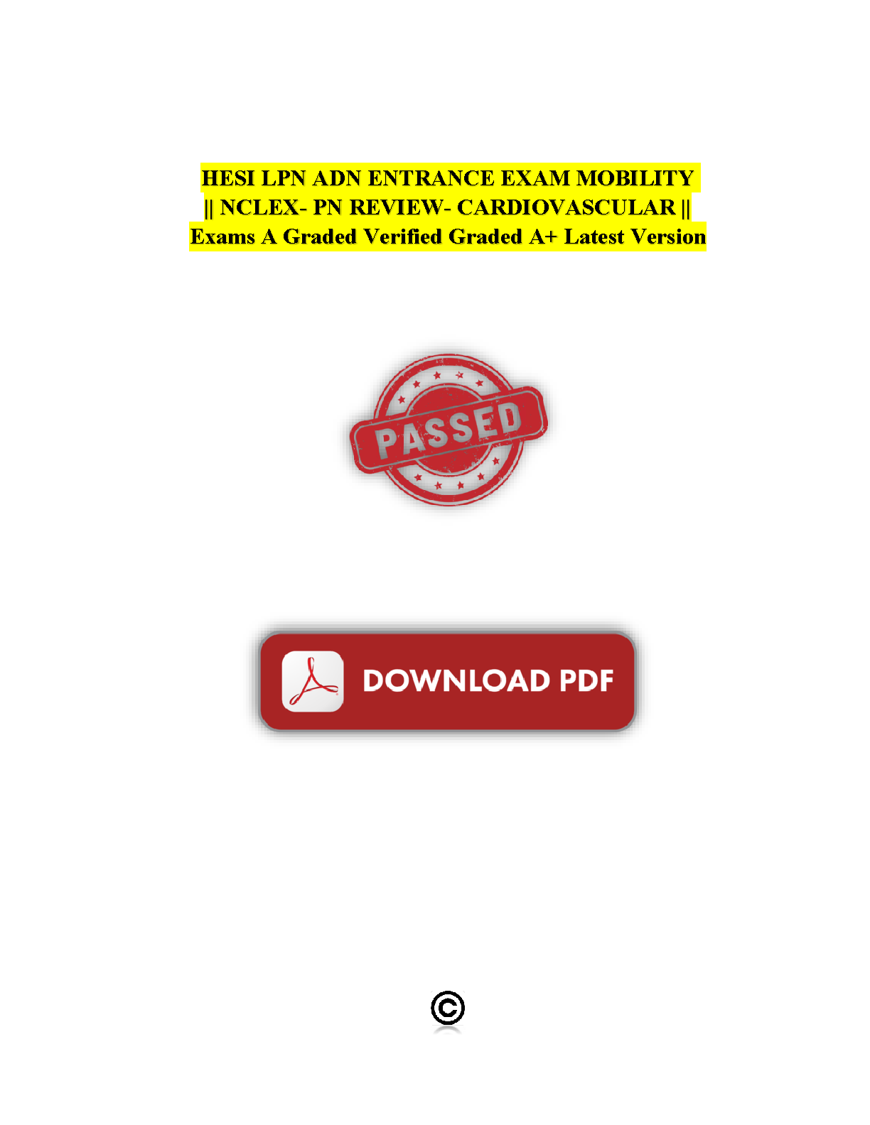 Ace your HESI LPN ADN Entrance Exam and NCLEX-PN with this comprehensive study guide focusing on the cardiovascular system. This latest edition contains A-graded verified exams to help you pass on your first try and avoid resits. Get ready for success!