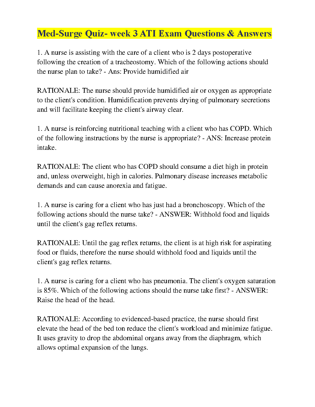 Med-Surge Quiz- week 3 ATI Exam Questions & Answers MOST RECENT SOLUTION 2023. DOWNLOAD on www.hackedexams.com INSTANTLY.