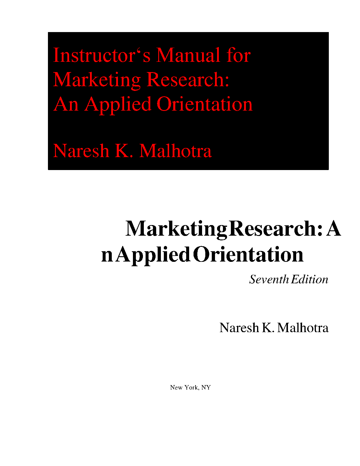 Instructor's Manual for Marketing Research: An Applied Orientation, Seventh Edition by Naresh K. Malhotra