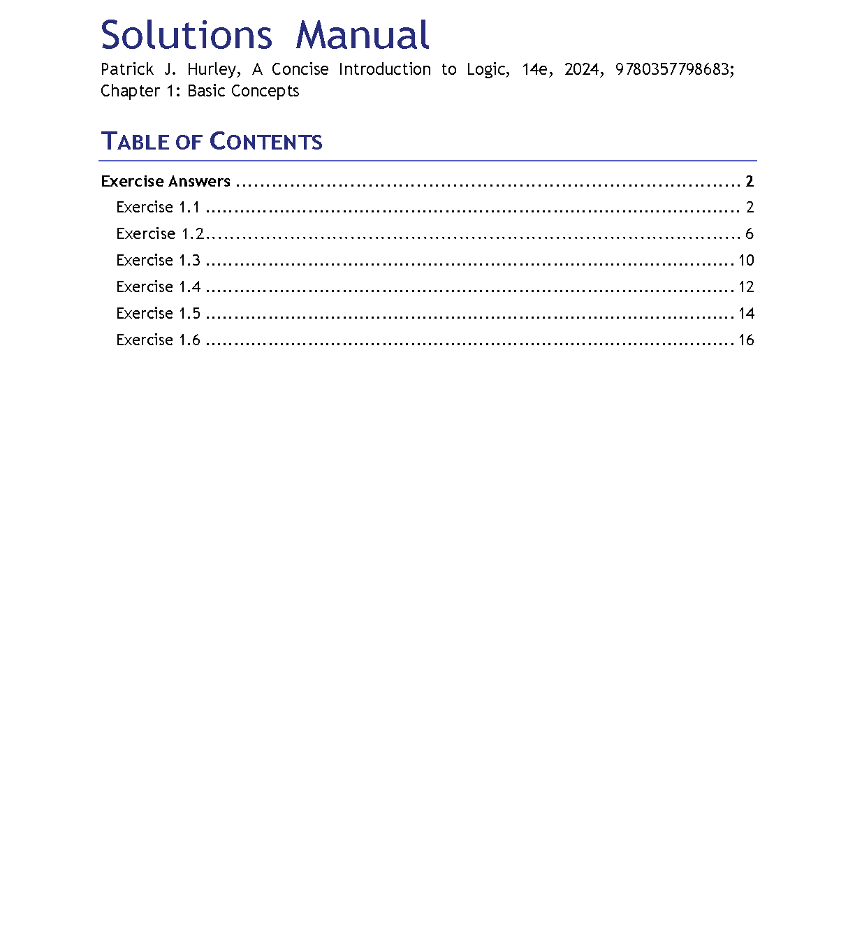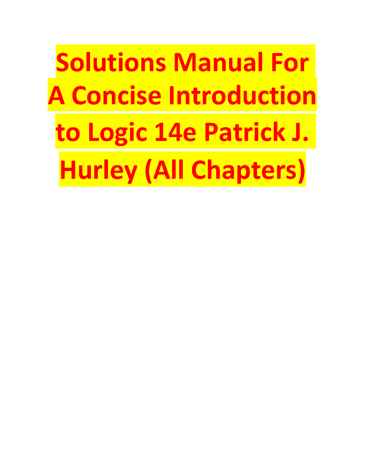 Ace your Logic exams with this comprehensive solutions manual for Patrick J. Hurley's "A Concise Introduction to Logic, 14th Edition". This resource provides detailed solutions for all chapters, helping students master concepts and achieve exam success on their first try.