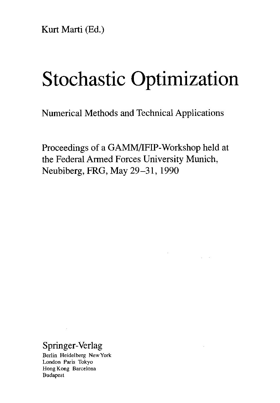 Access this comprehensive guide to Stochastic Optimization, a valuable resource for students aiming to master numerical methods and technical applications in this field. This edition, edited by Kurt Marti, offers in-depth coverage, ensuring exam success on your first attempt.