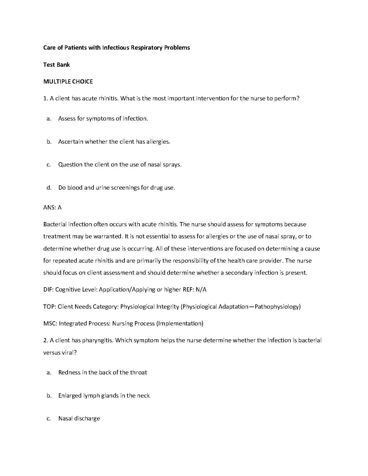 ATI MED SURG Care of Patients with Infectious Respiratory Problems Test Bank MOST RECENT SOLUTION RATED A+. DOWNLOAD on www.hackedexams.com INSTANTLY.