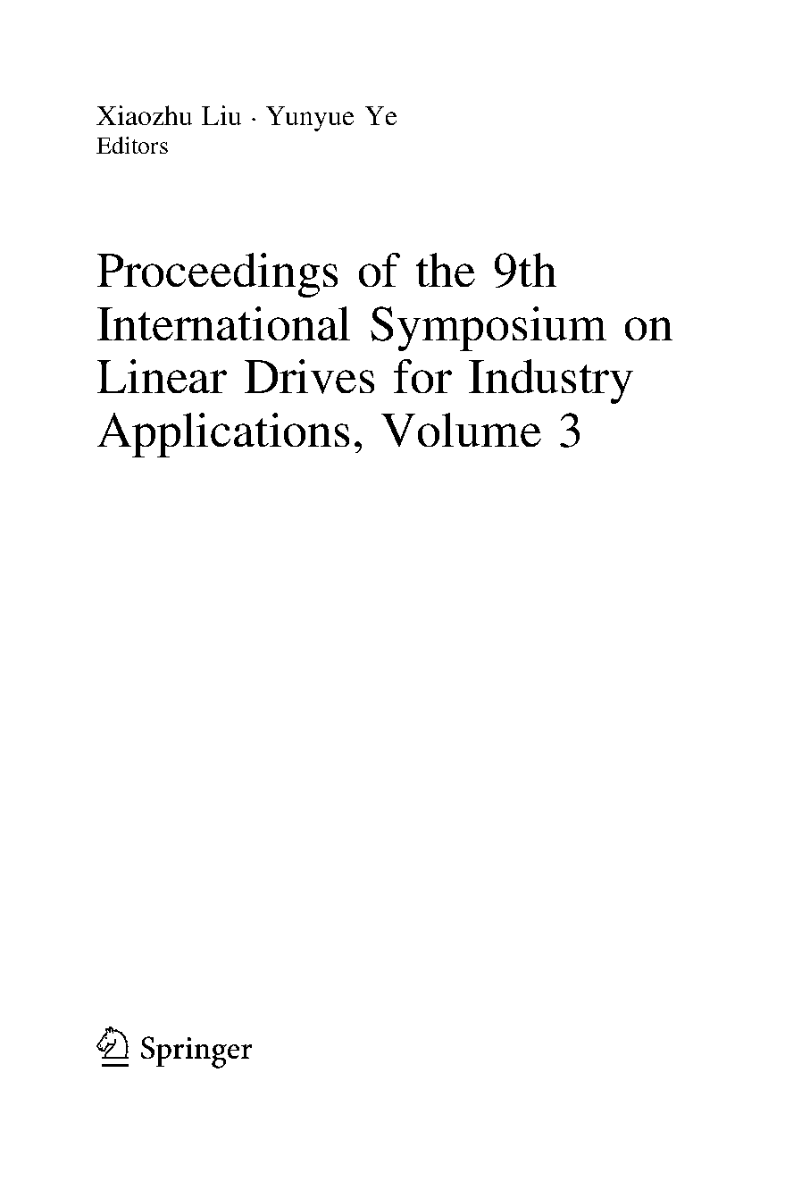 Proceedings of the 9th International Symposium on Linear Drives for Industry Applications, Volume 3 - Edited by Xiaozhu Liu and Yunyue Ye