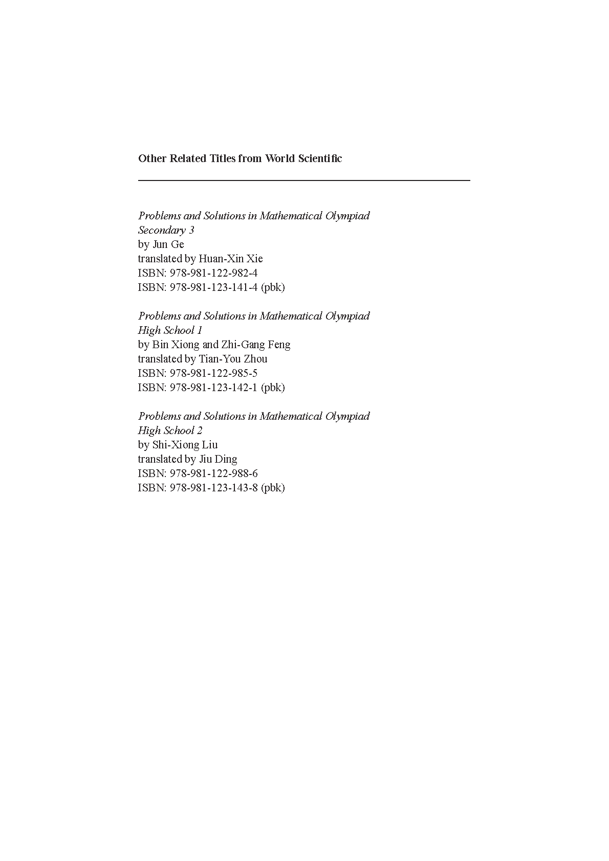 Problems and Solutions in Mathematical Olympiad: High School 3 by Hong-Bing Yu, Fangfang Lang, and Yichao Ye