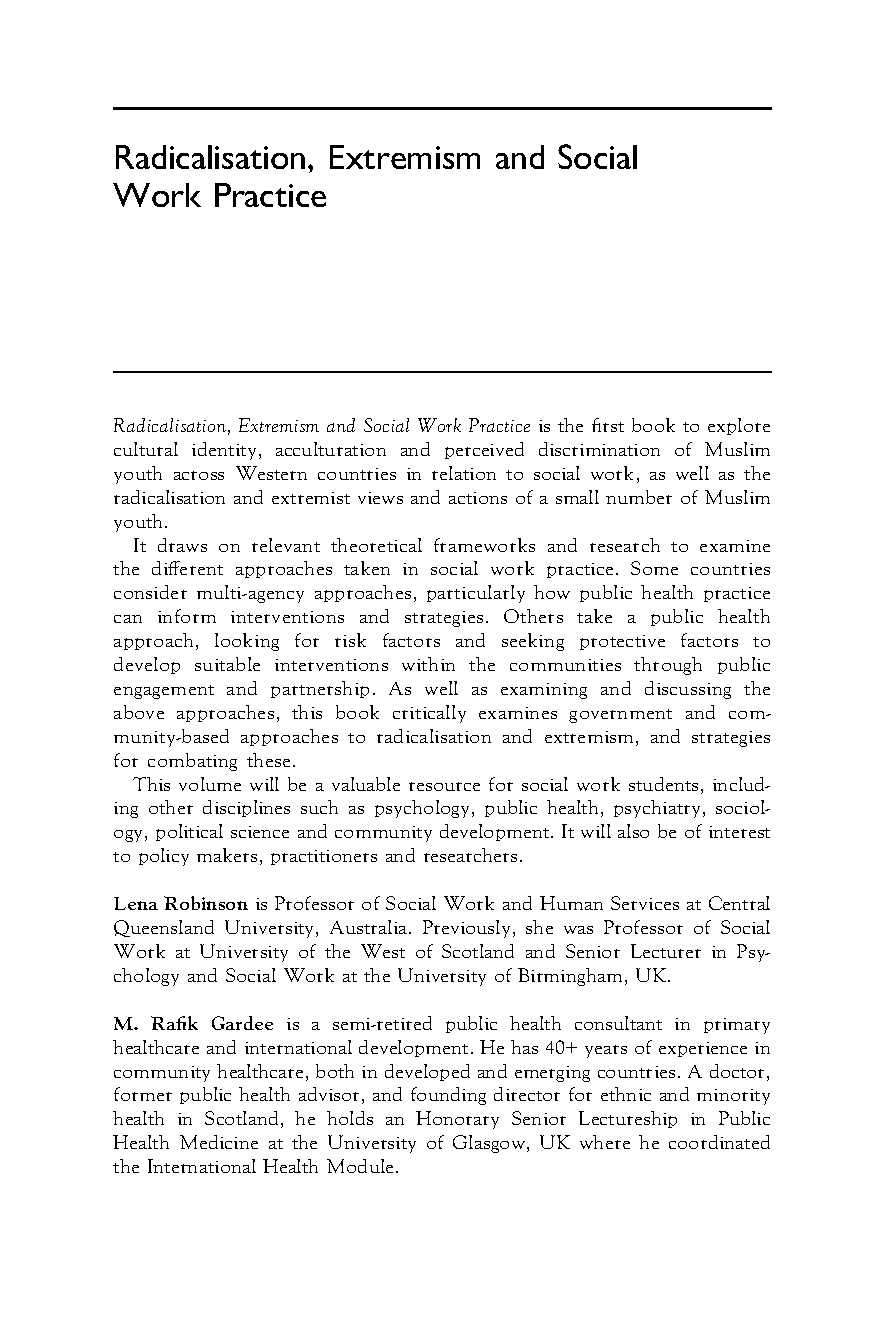 Radicalisation, Extremism and Social Work Practice: Minority Muslim Youth in the West - Edited by Lena Robinson and M. Rafik Gardee