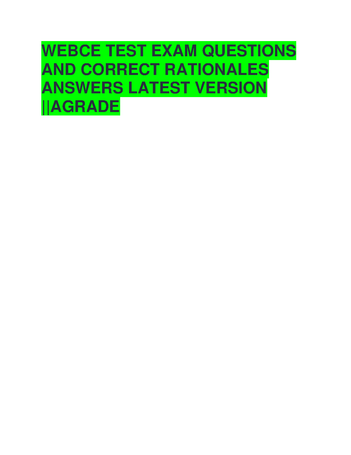 WEBCE Test Exam Questions and Correct Rationales Answers Latest Version 2024-2025: Ace Your Exams on the First Attempt