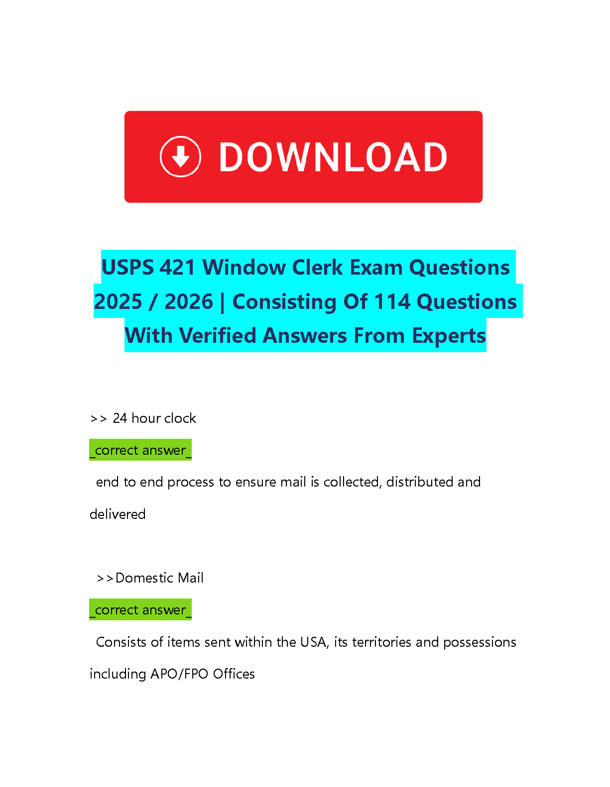 Ace your USPS 421 Window Clerk exam with this comprehensive resource. This guide contains 114 questions and verified answers from experts, ensuring exam readiness and success. Prepare for the 2025/2026 exam and avoid resits.
